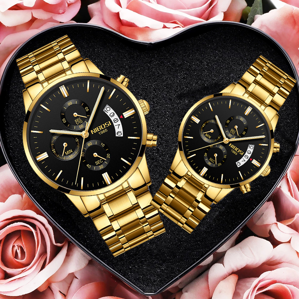 Relógios NIBOSI Casal Para Amantes Relógios De Luxo Moda Vestidos Presentes Para Dia Dos Namorados