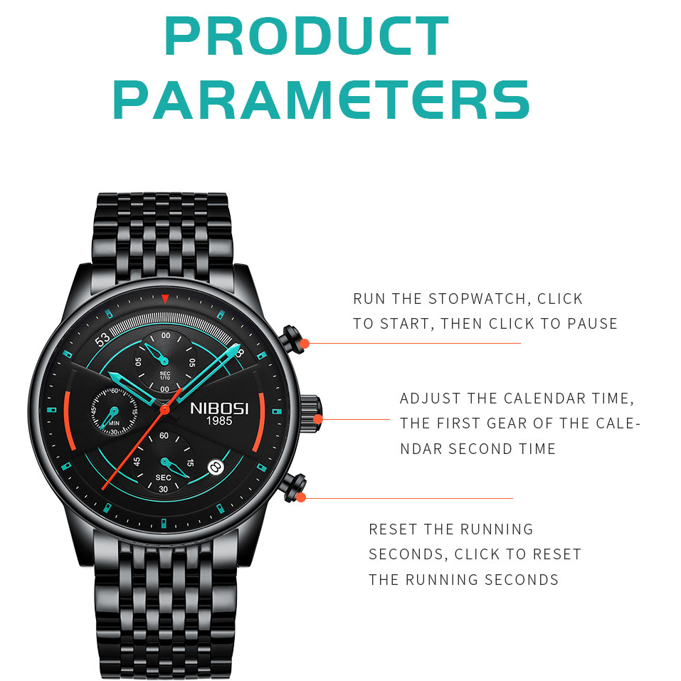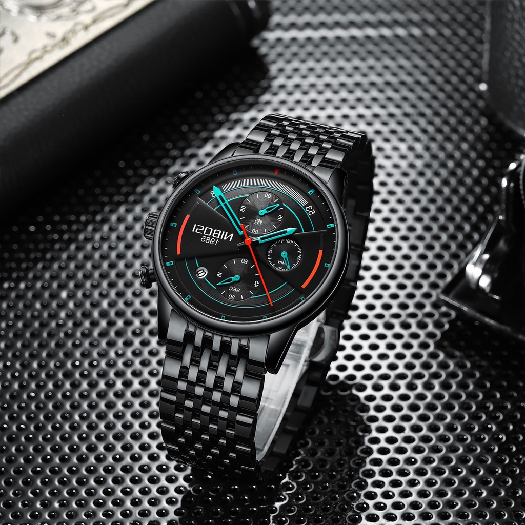 NIBOSI 2021 Mens Relógios Top Marca De Luxo Esporte Cronógrafo De Quartzo Relógio De Pulso Data Relogio Masculino À Prova D 'Água