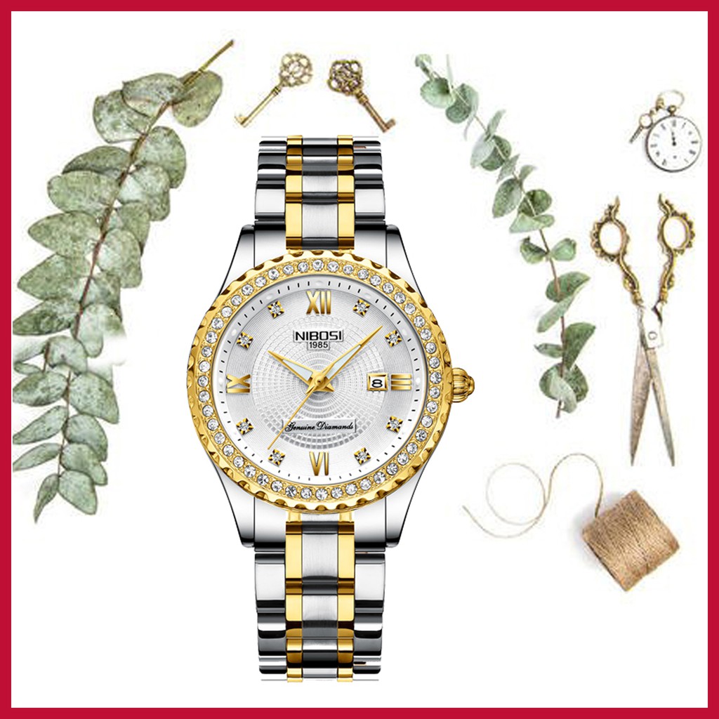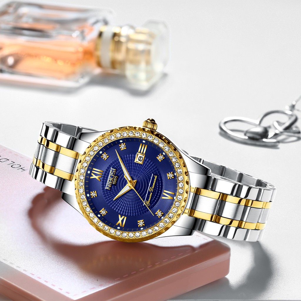 NIBOSI Relógio feminino clássico de quartzo pulseira de aço inoxidável à prova d'água Relógio feminino da moda com data para presente