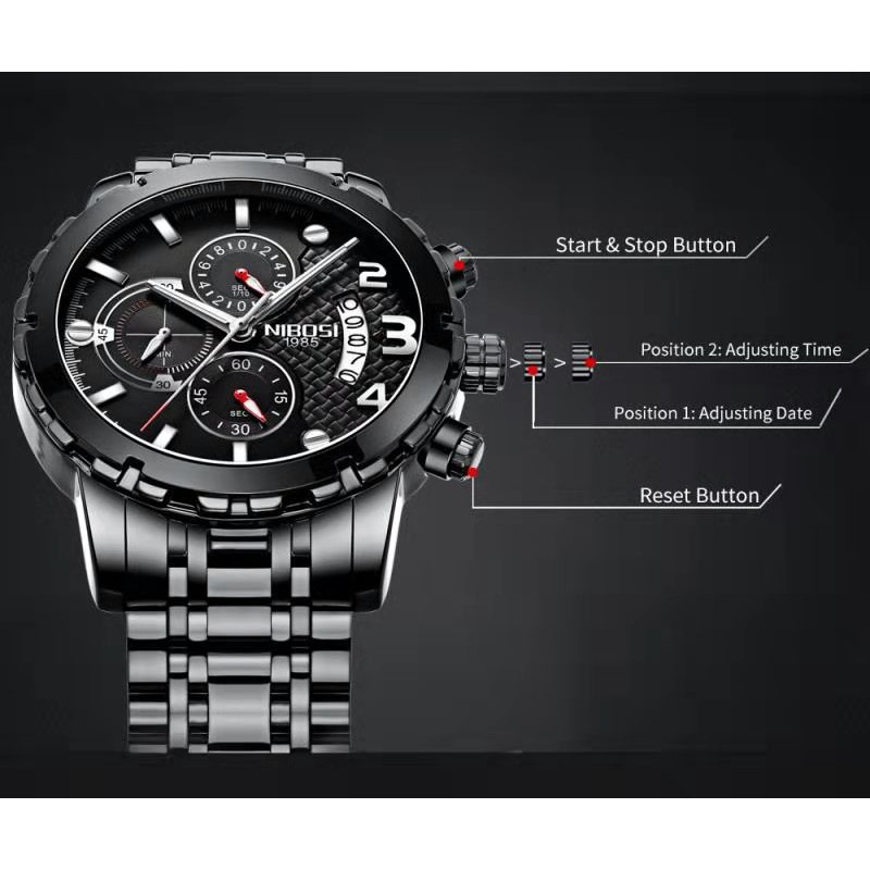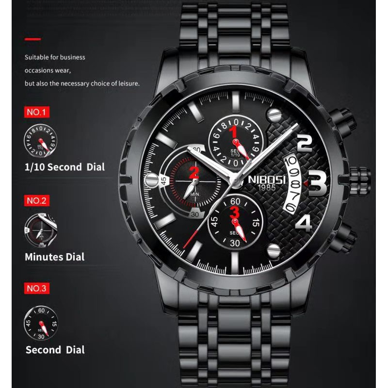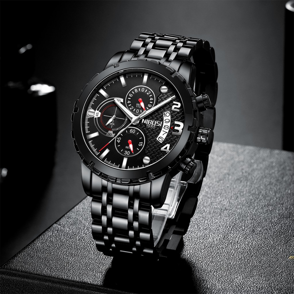 Relógio masculino NIBOSI cronógrafo de luxo esportivo relógio militar à prova d'água