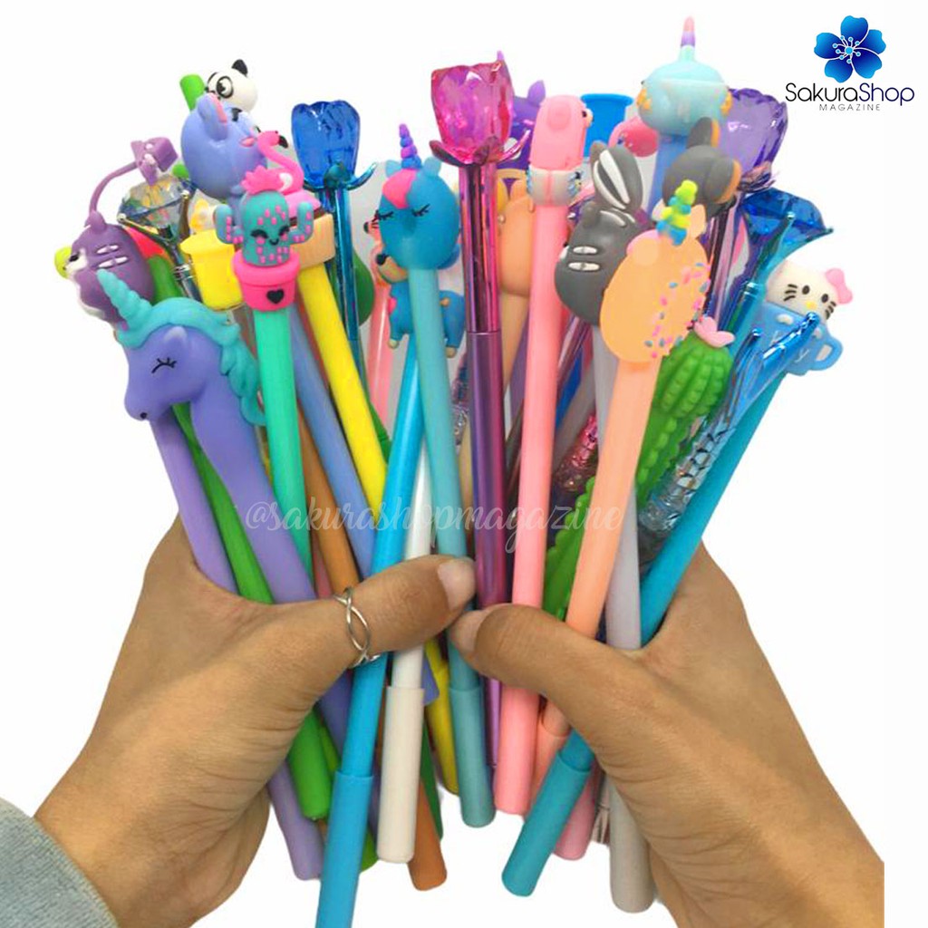 Caneta Criativa Gel Fofa Bixinhos Personagens Animadas Kawaii - Kit com 12 ATACADO REVENDA