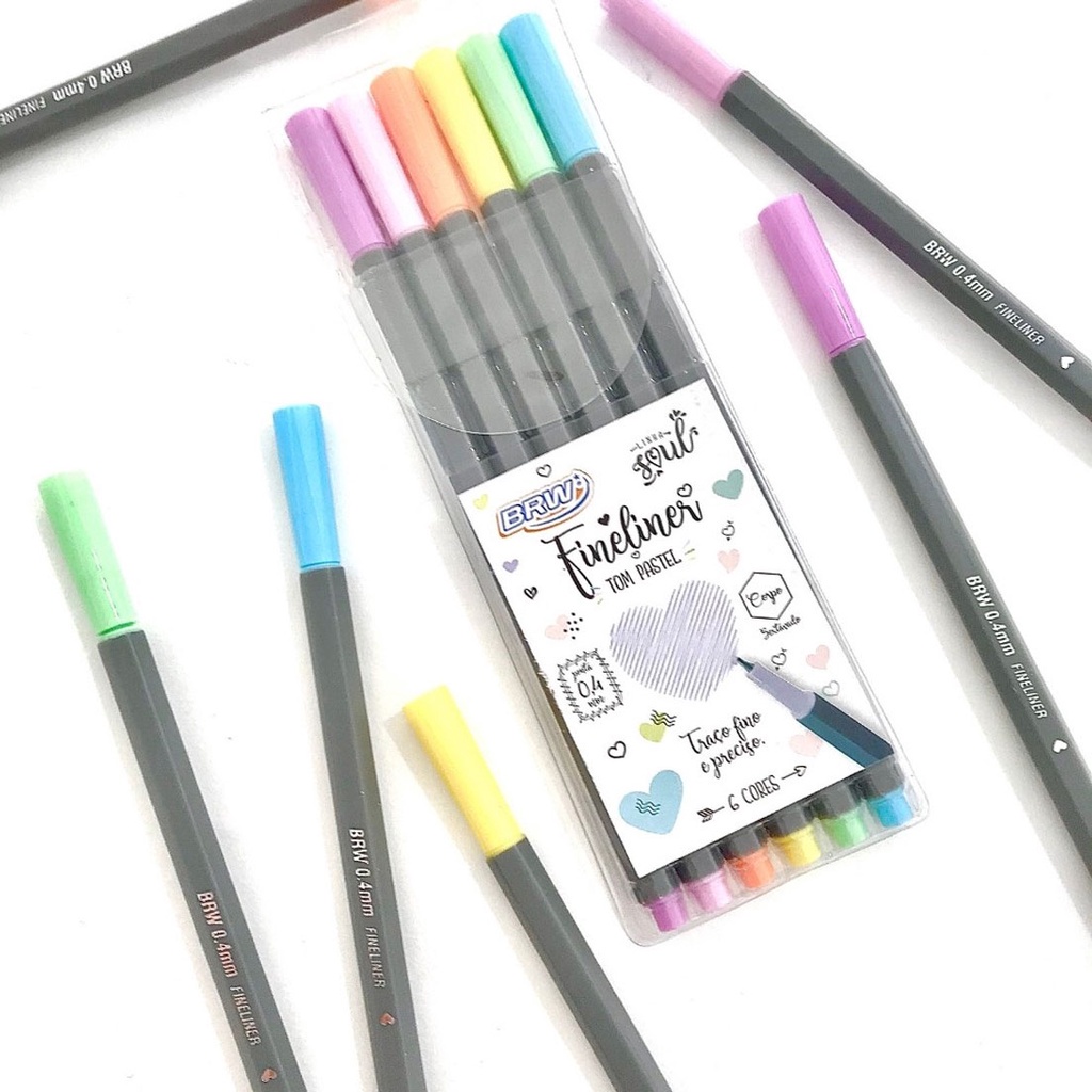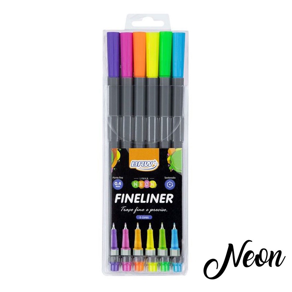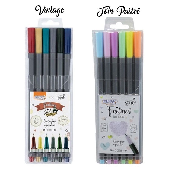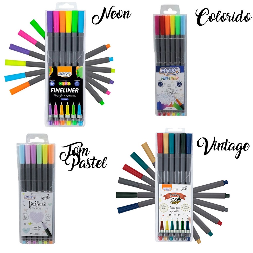 Kit 6 Canetas Fineline Tom Pastel Vintage Neon Colorido BRW
