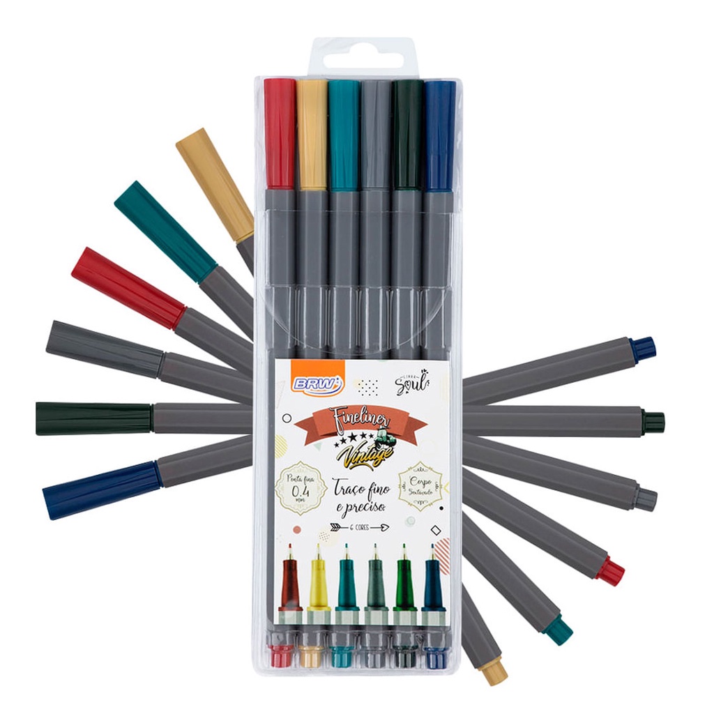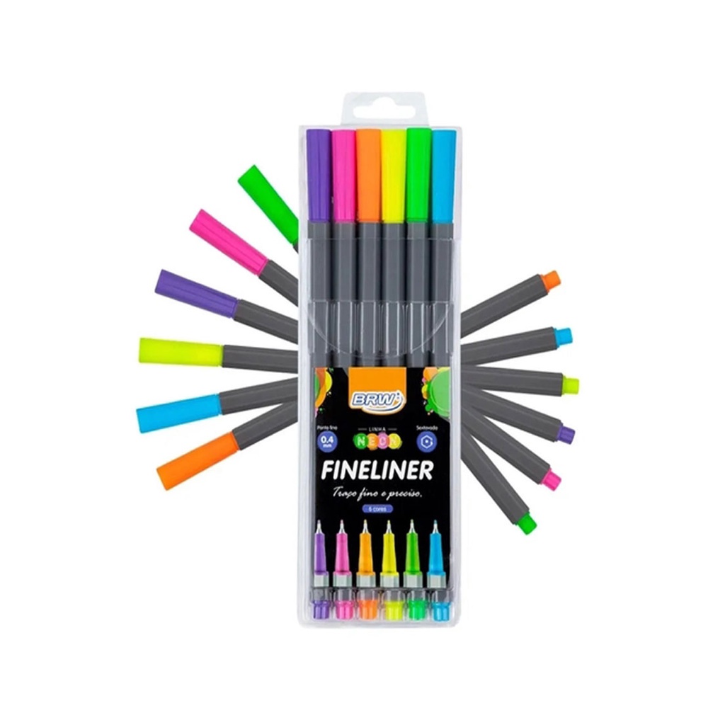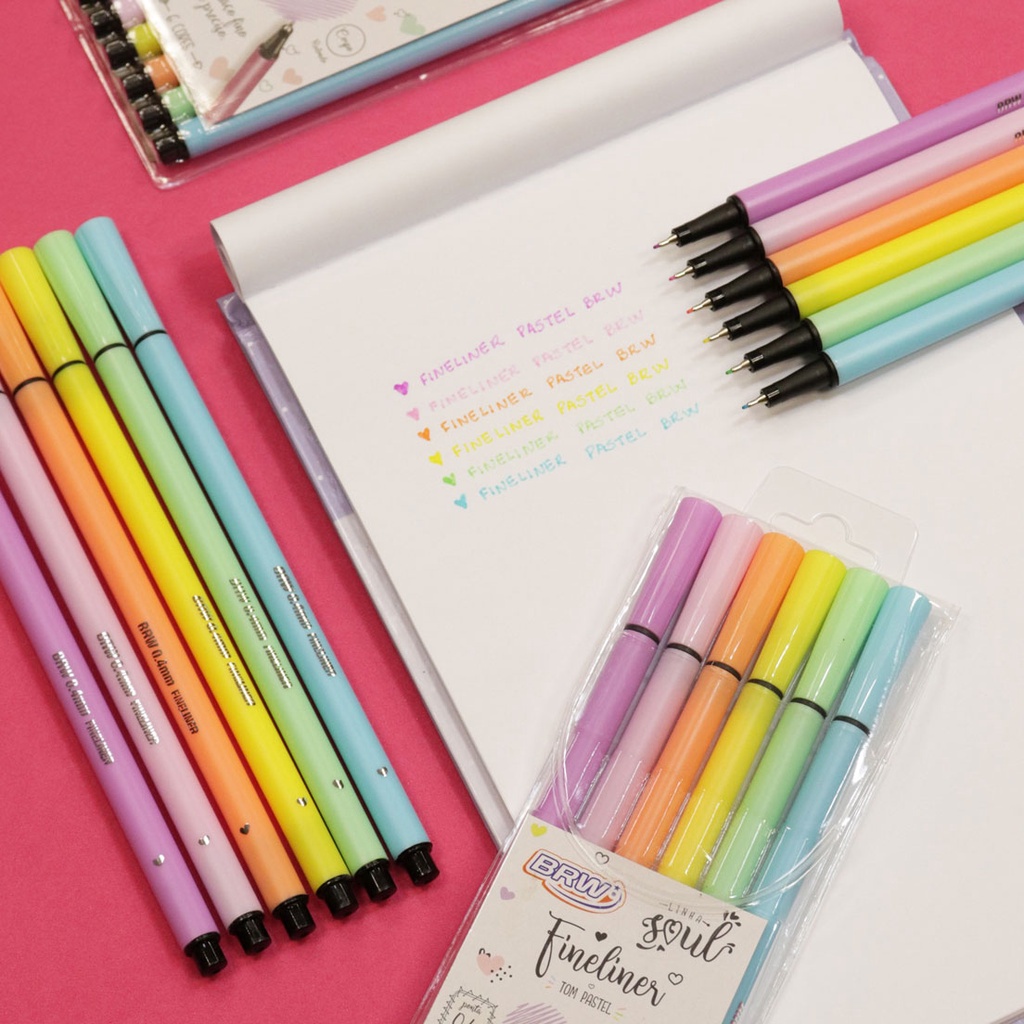 Kit 6 Canetas Fineline Tom Pastel Vintage Neon Colorido BRW
