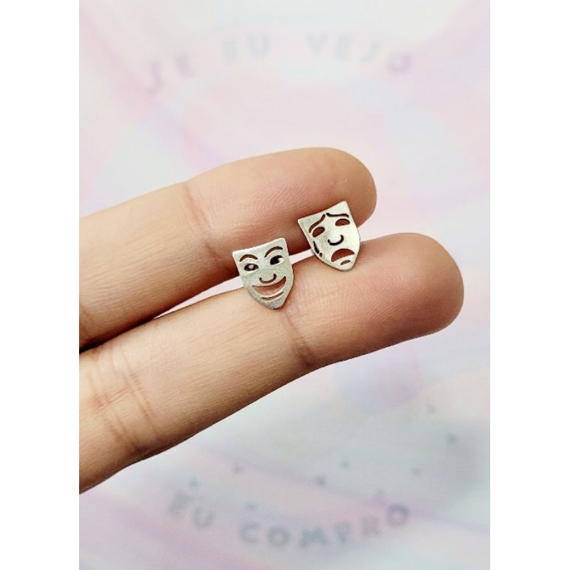 Brinco Máscaras de teatro aço inox cirúrgico mascaras mascara Máscara Artes cênicas chora agora ri depois ator atriz