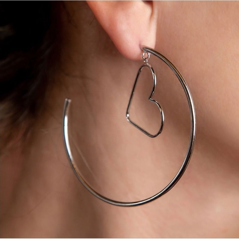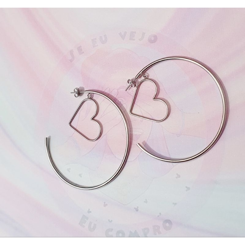 Brinco Argola pingente grande coração em aço inox 316l cirúrgico argolas grande