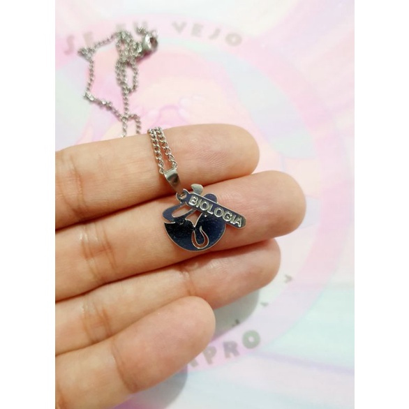 Colar Biologia aço inox cirúrgico gargantilha corrente pingente bióloga formatura prata presente profissão