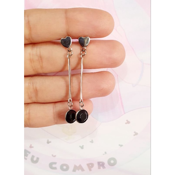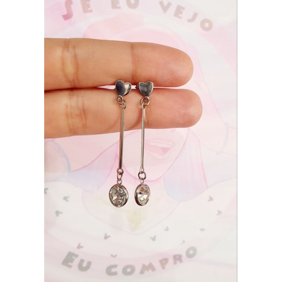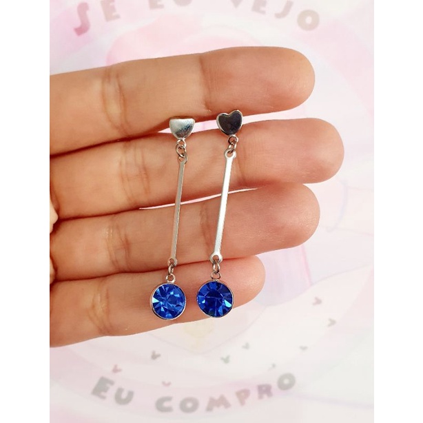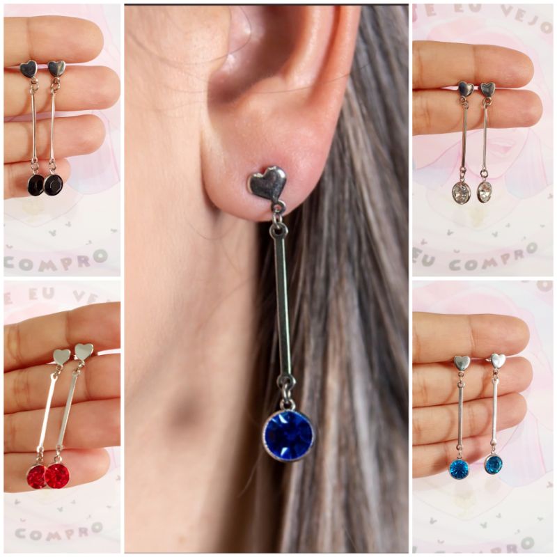 Brinco Longo Strass Colorido aço cirúrgico inox pedra vermelha azul verde preto festa formatura moda feminina