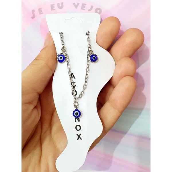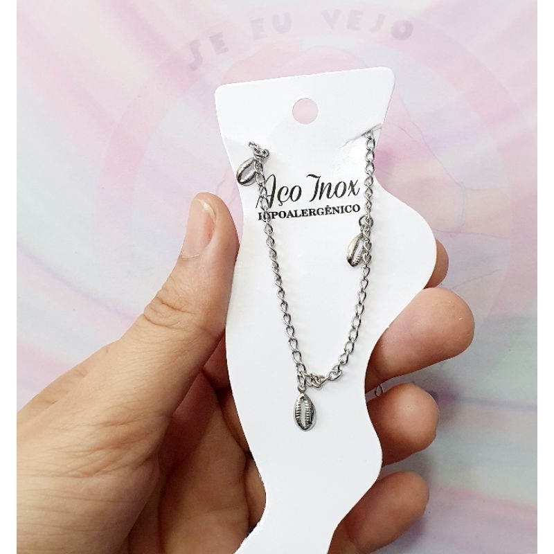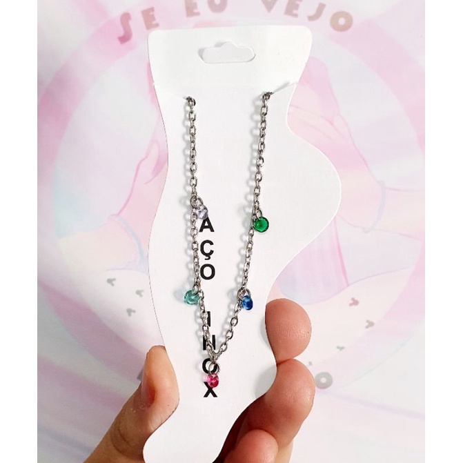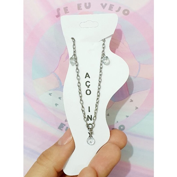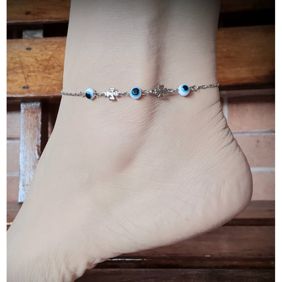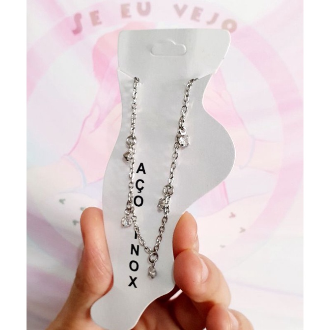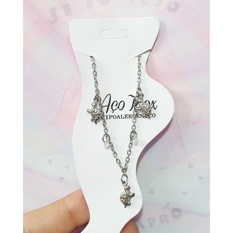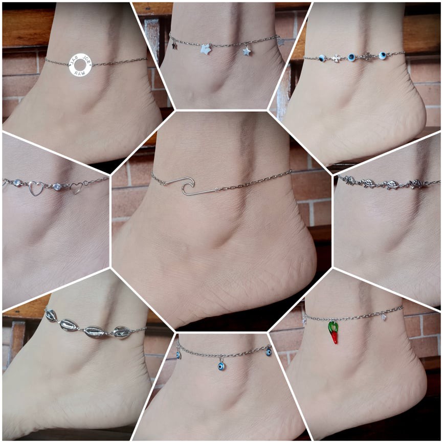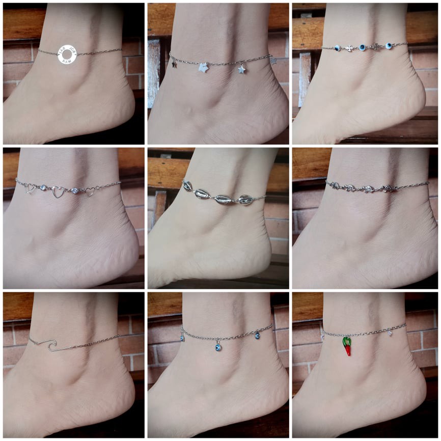 Tornozeleira Feminina Aço Inox cirurgico Figa Olho Grego Strass Onda Estrela Coração Tartaruga Pedra Pingente prata