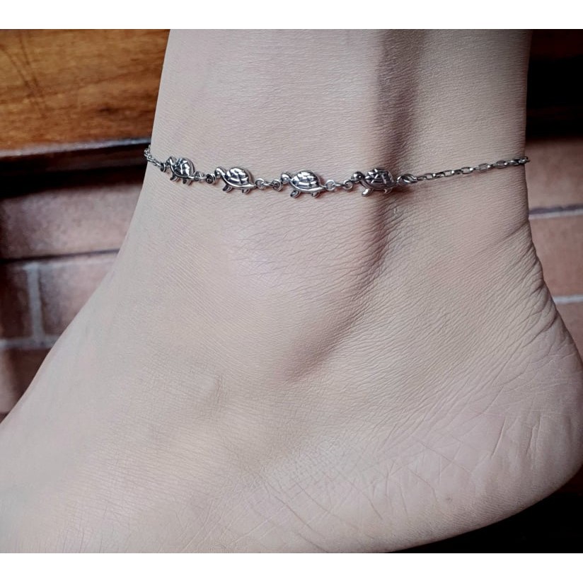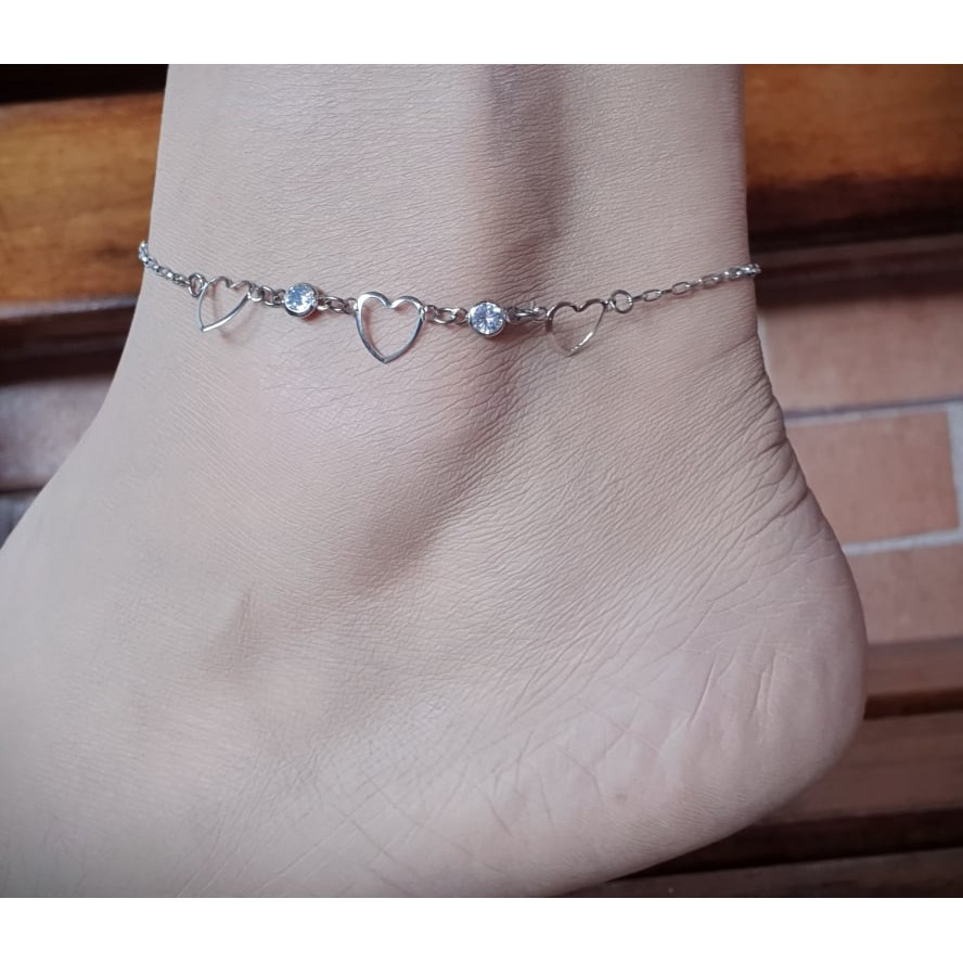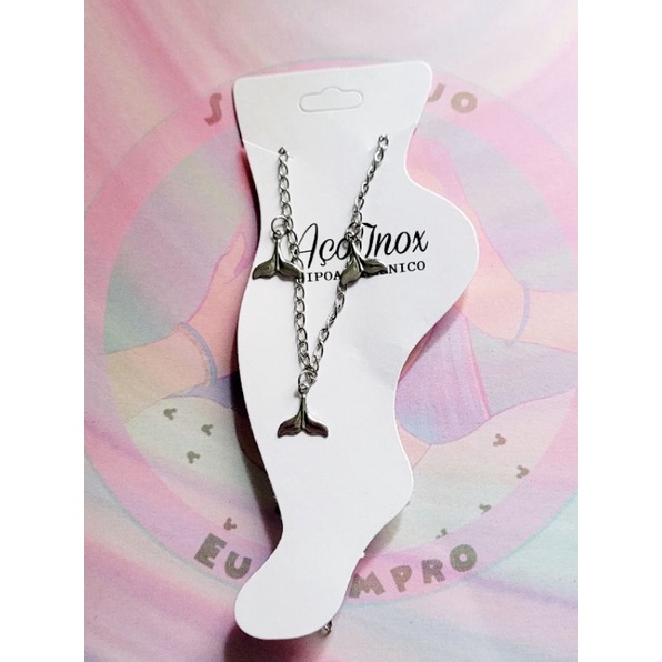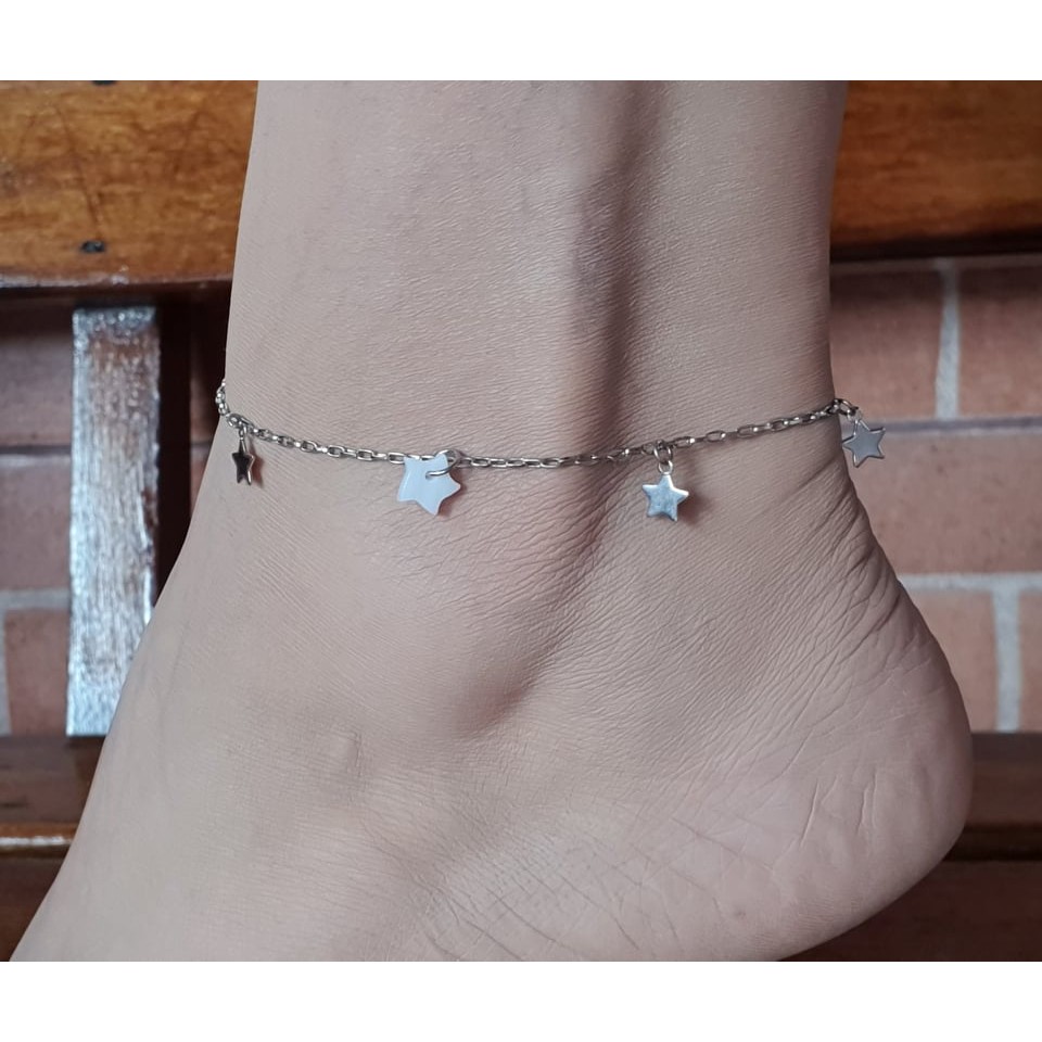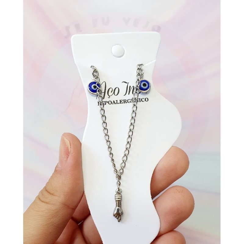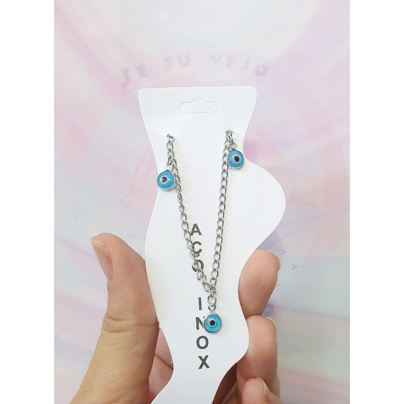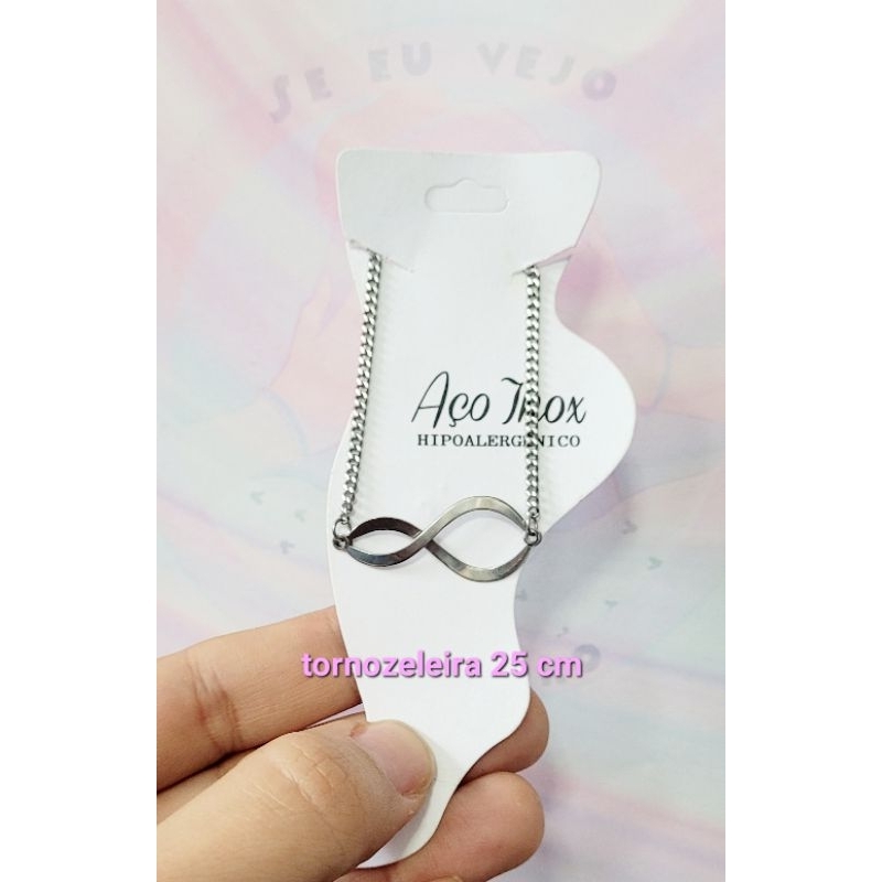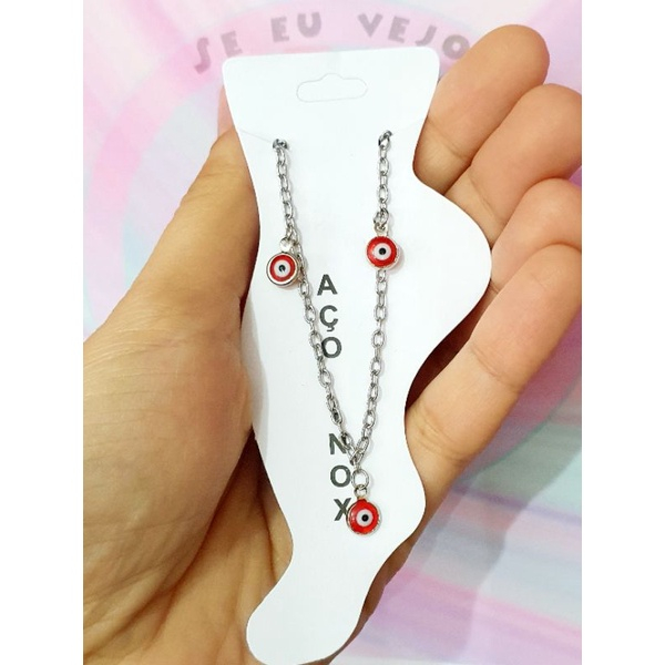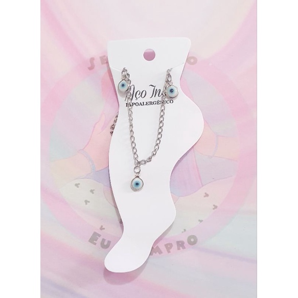 Tornozeleira Feminina Aço Inox cirurgico Figa Olho Grego Strass Onda Estrela Coração Tartaruga Pedra Pingente prata