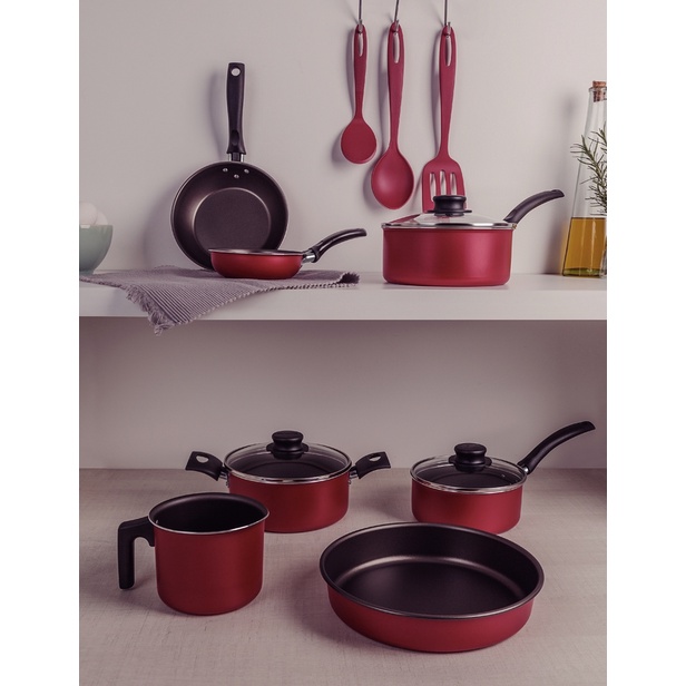 Jogo de Panelas Tramontina Turim Antiaderente Vermelha - 10 Peças
