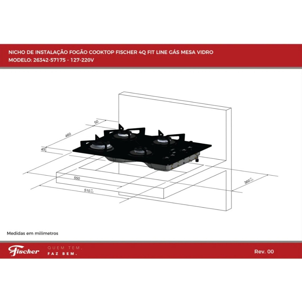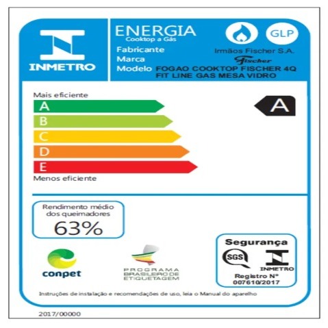 Fogão Cooktop Fischer 4 Bocas Fit Line Gás Mesa Vidro