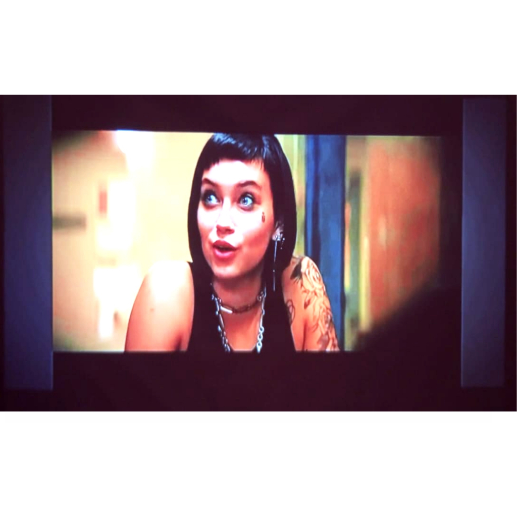 Tela de projeção 75 polegadas dobravel branca com fundo cinza