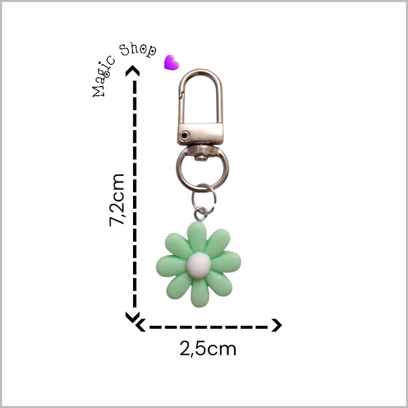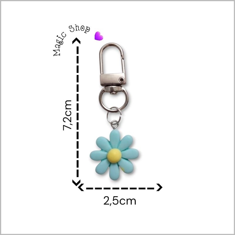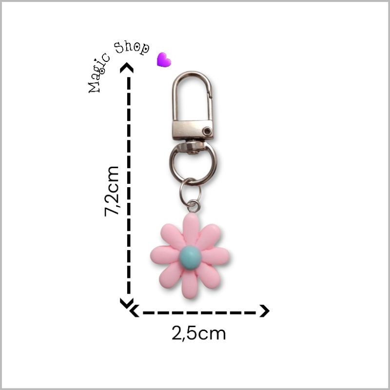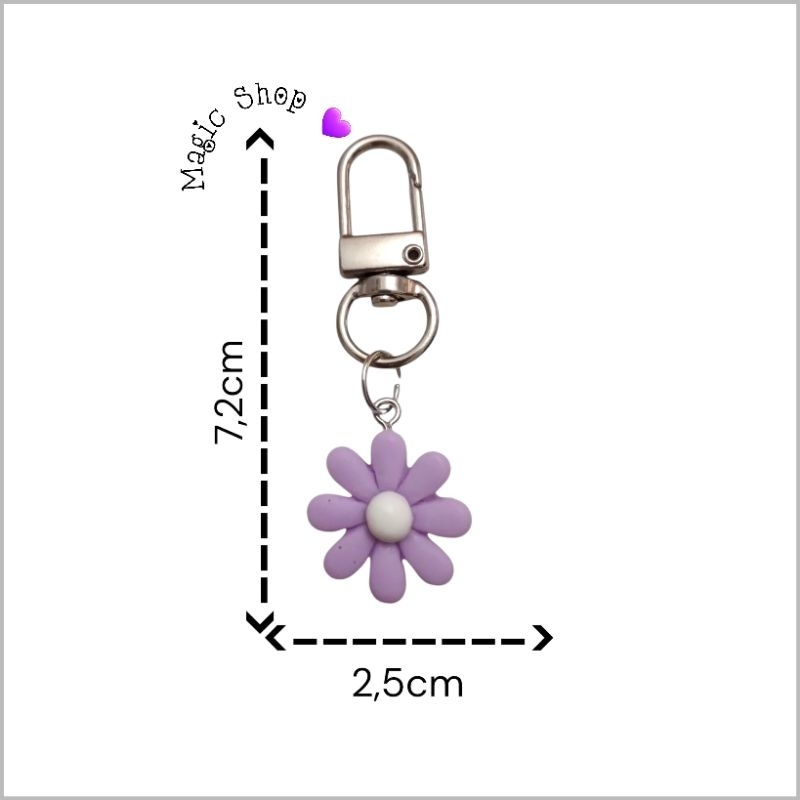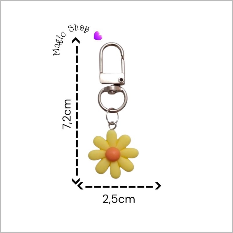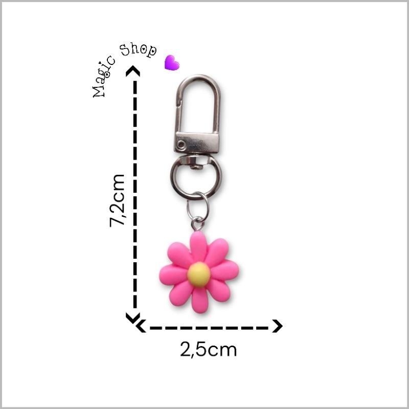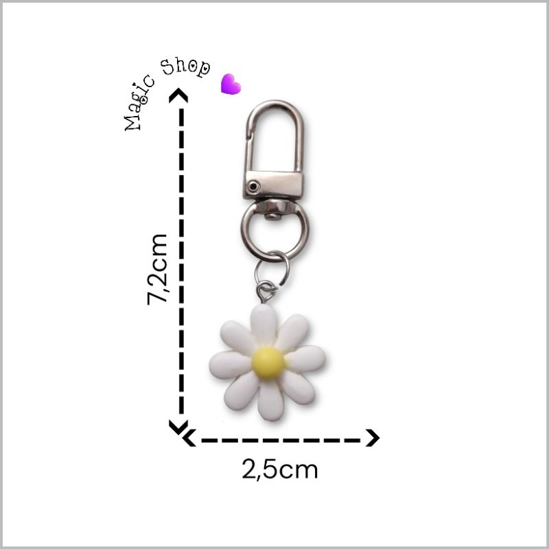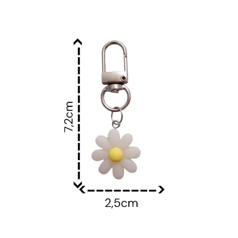 Chaveiro com pingente de Margarida/Flores coloridas/Acessório de bolsa, estojo, mochila e Chaves/flor/Florzinha/Girassol