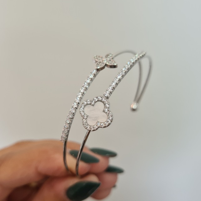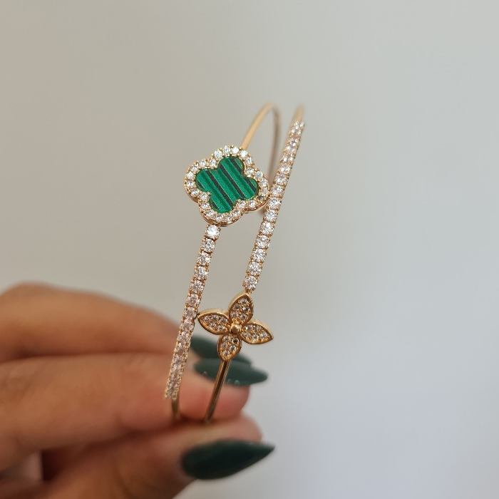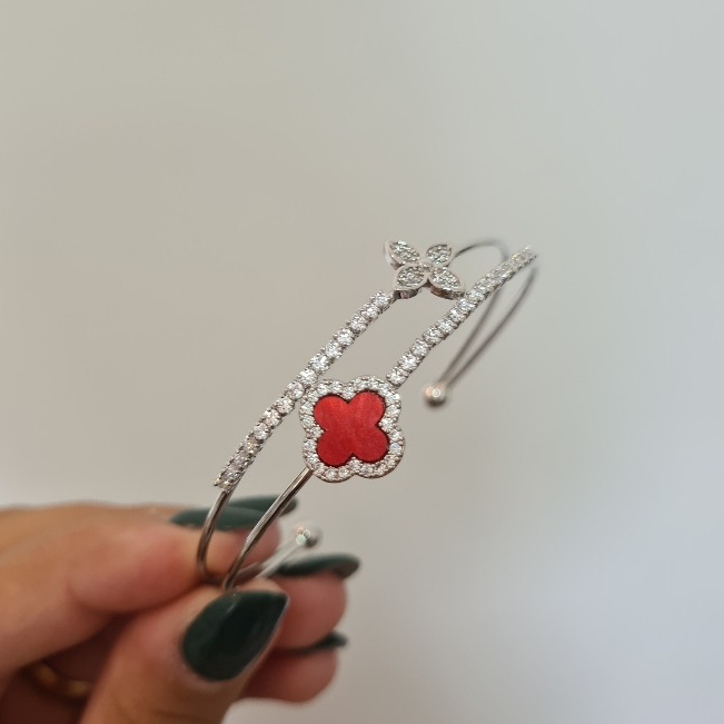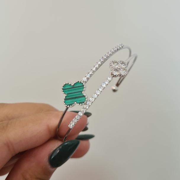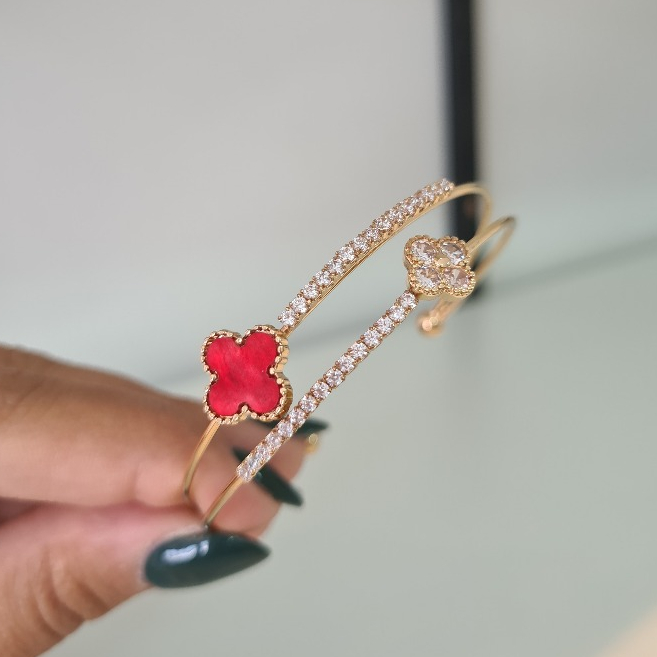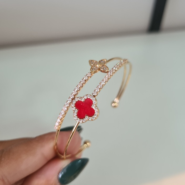 Pulseira Bracelete de dupla camada trevo de quatro folhas requintada aberta dourada prata