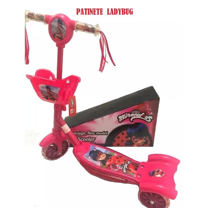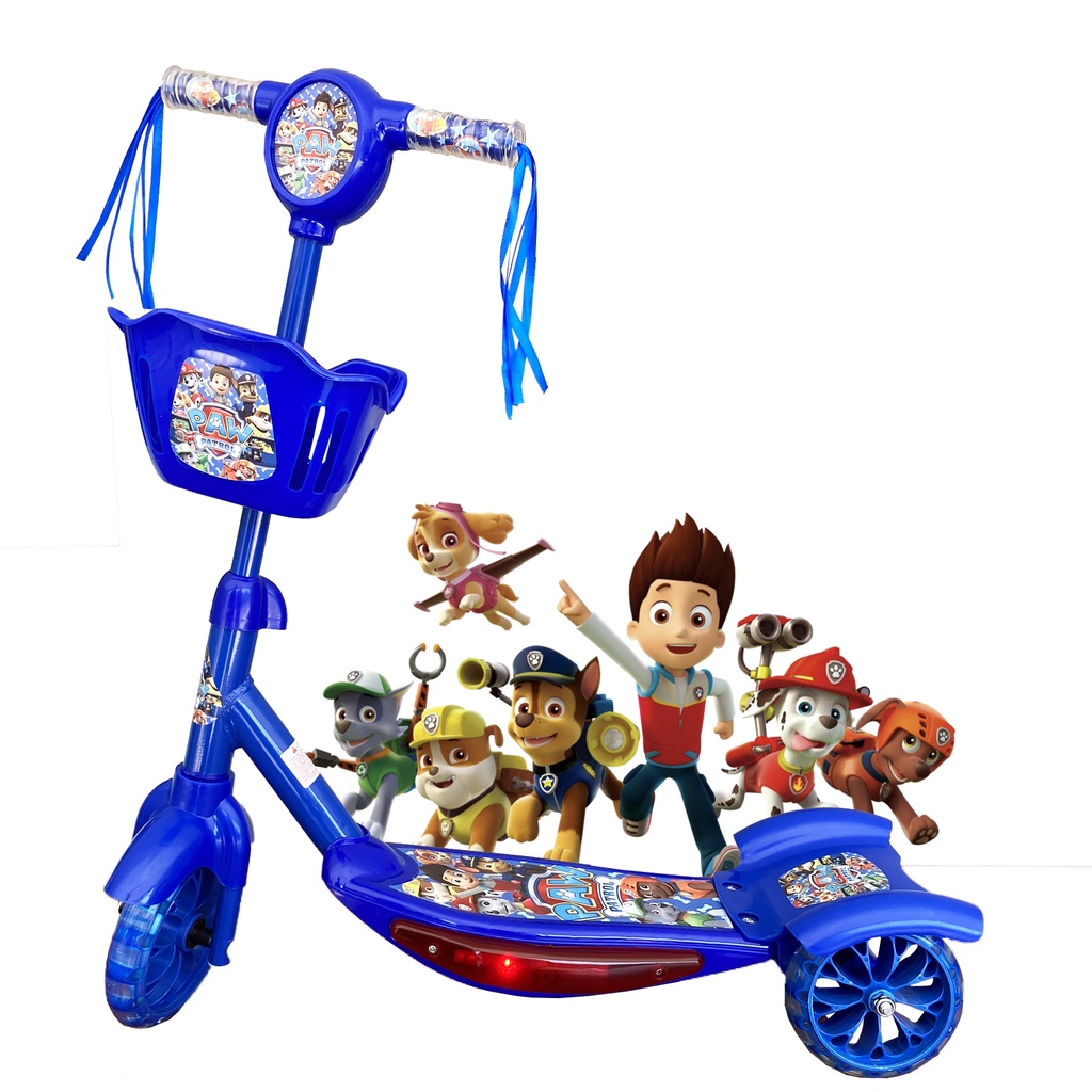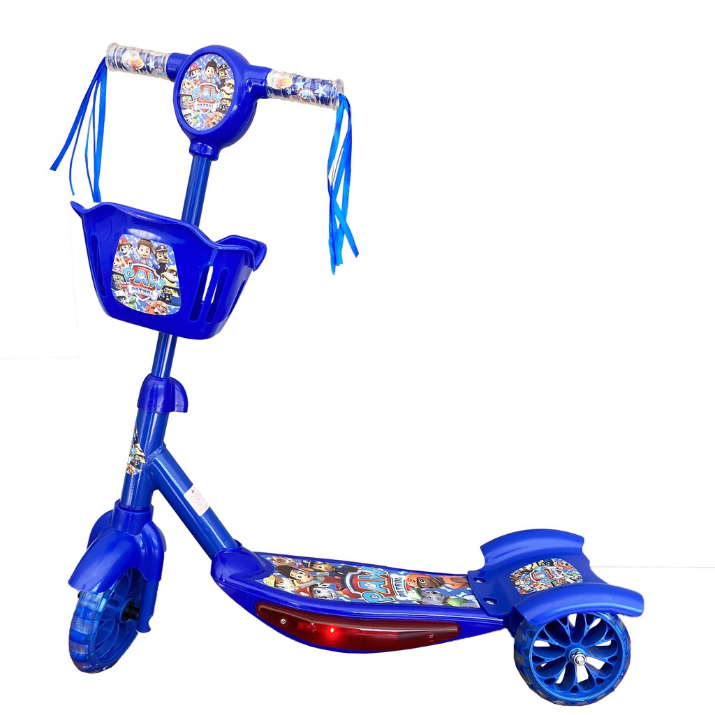 Patinete Musical 3 Rodas Cesta E Luzes Patrulha Canina Meninos Até 35kg