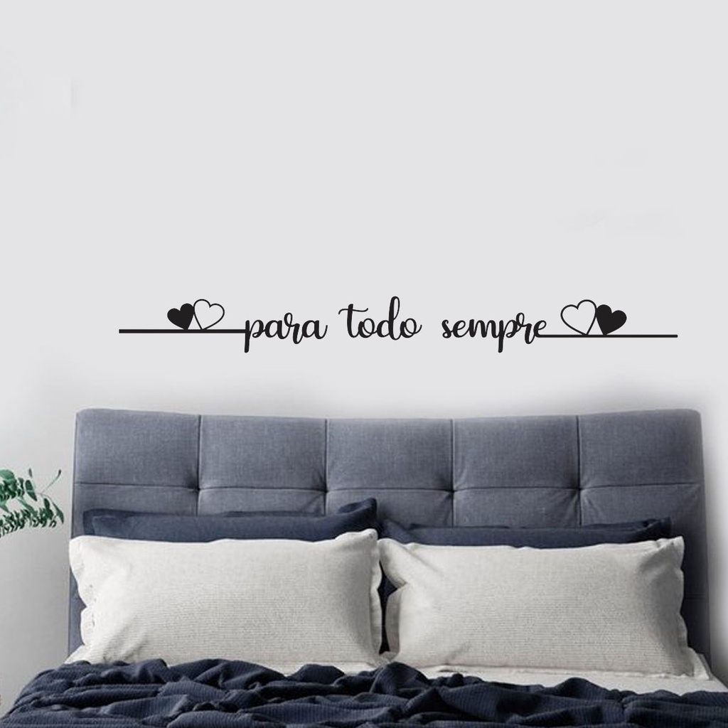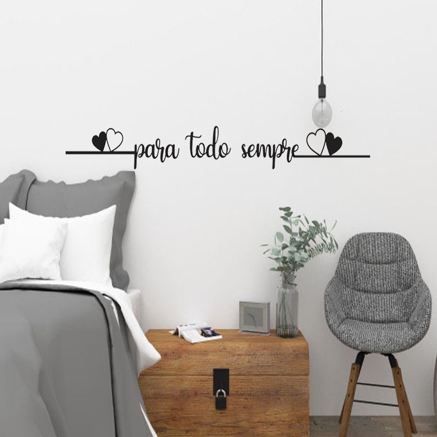 Frase de Parede Para Todo Sempre Dois Corações Decorativo para Quarto Cama Cabeceira MDF