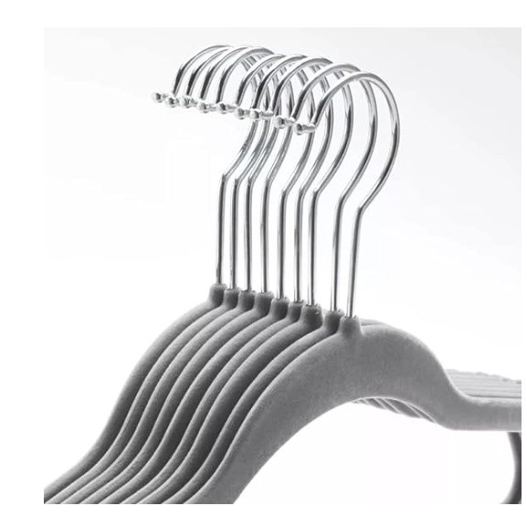 Cabide de Veludo Adulto 45cm Cinza 10 Pecas