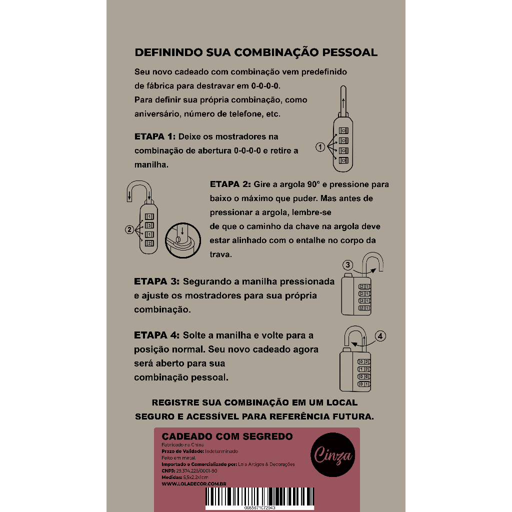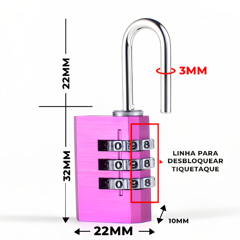 Cadeado com Senha Mala Mochila Rosa