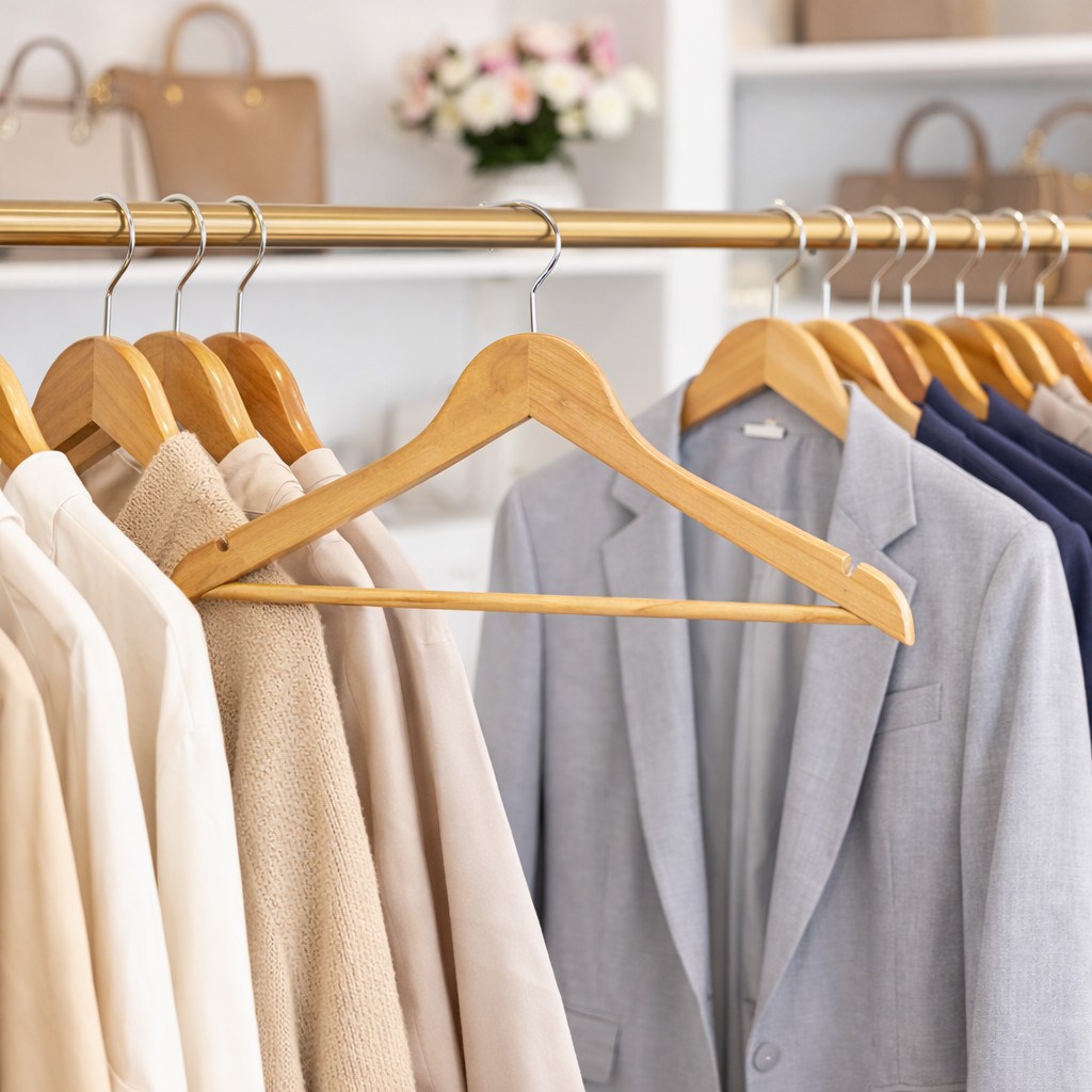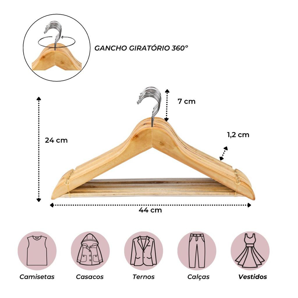 Cabide de Madeira Marfim Envernizado Kit com 40 pecas