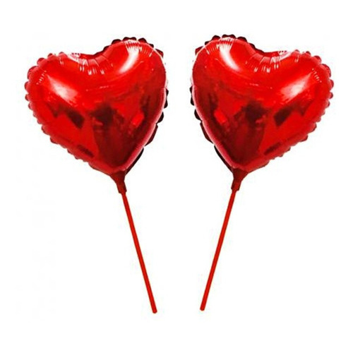 20 Balão Metalizado Coração Vermelho Centro Mesa 21cm + 20 Varetinhas - Festa Decoração