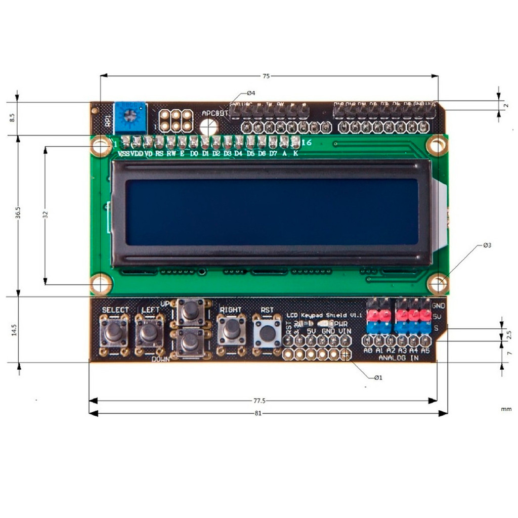 Display Lcd Keypad Shield 16x2 Botoes Arduino Blutu