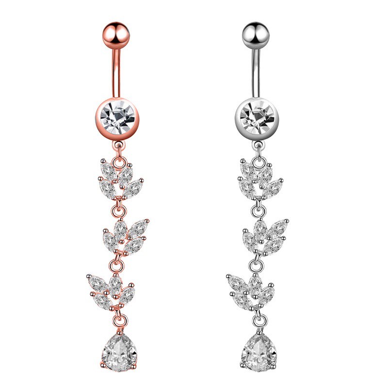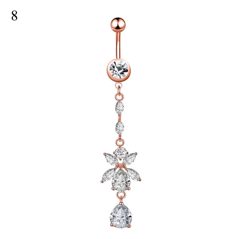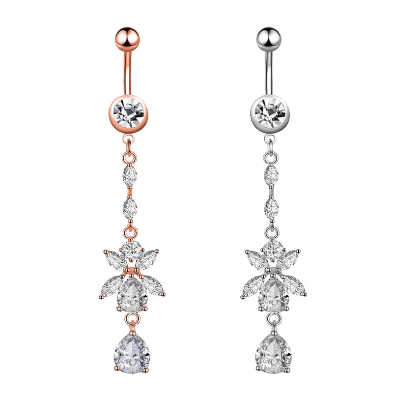 1 Pc Nova Zircon Moda Aço Inoxidável Cirúrgico Piercing Flor Pingente De Umbigo Botão Anéis Barriga Corpo Jewely