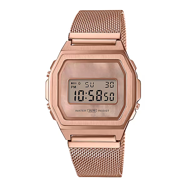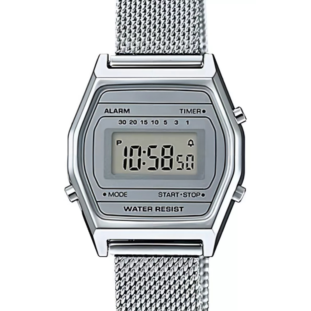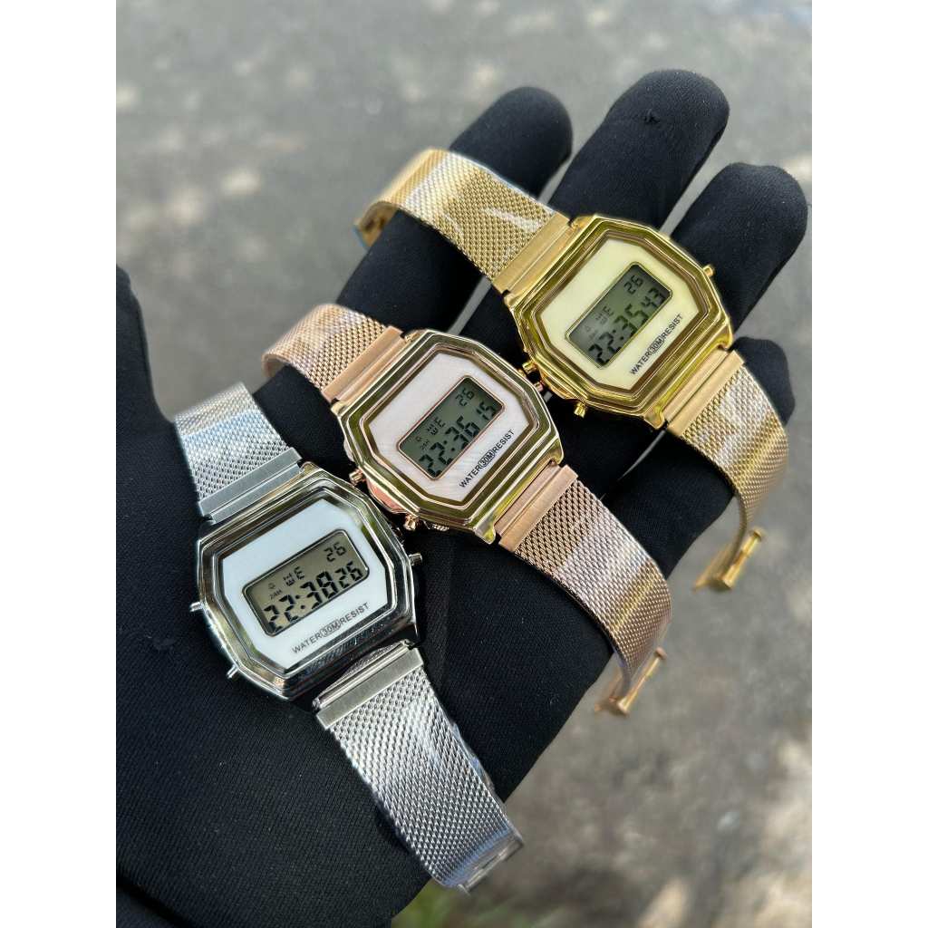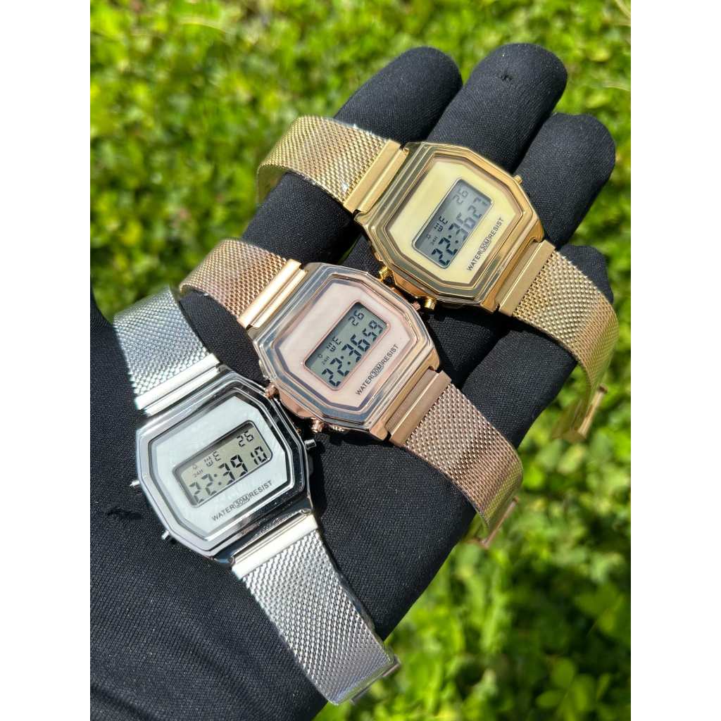 Relógio Feminino Digital Octágono Pulseira de Esteira em Metal Dourado Prata Rosé Moda Mulher