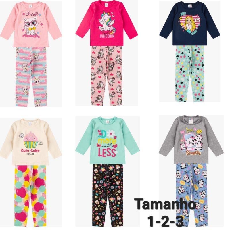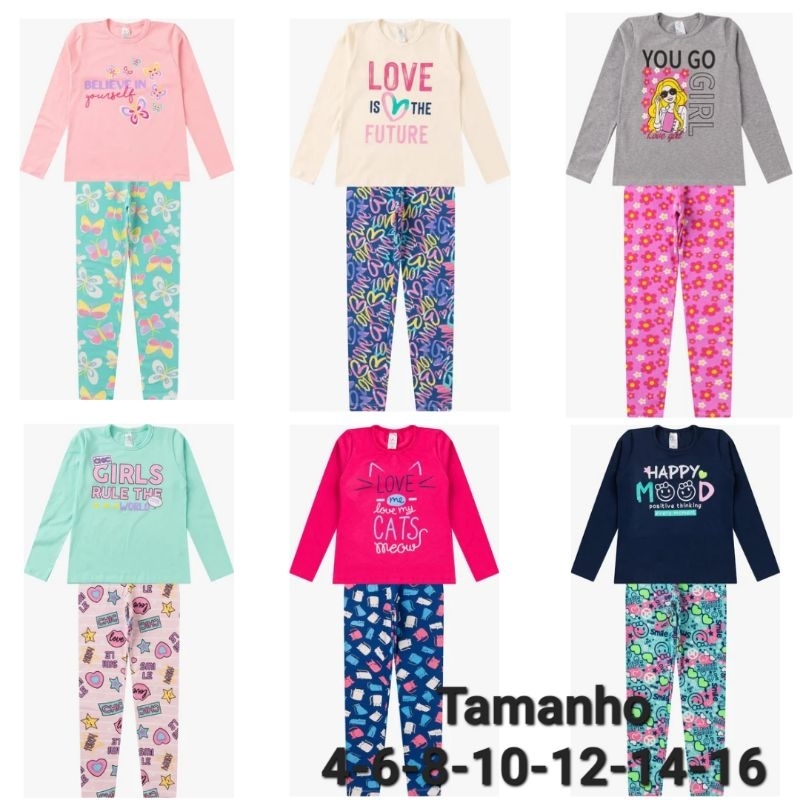 Kit com 5 conjuntos de cotton inverno meia estação menina legging estampada e lisa