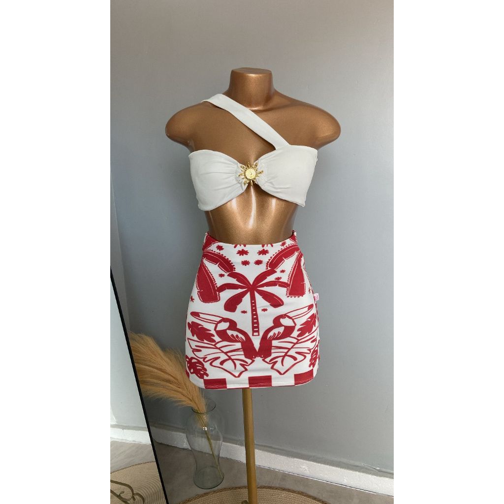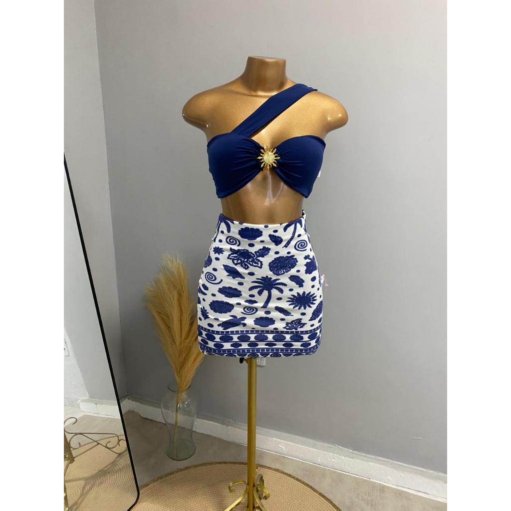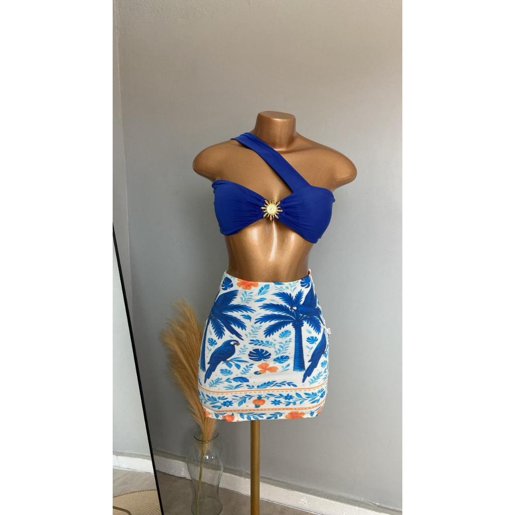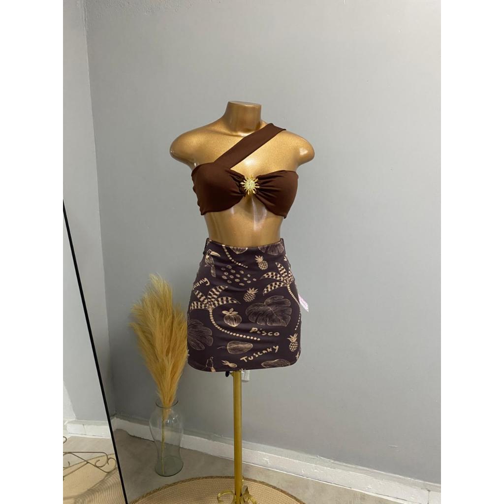 CONJUTO LUA FEMININO, SAIA CURTA, SUPLEX ESTAMPADO, CROPPED COM BOJO POLIAMIDA,TENDÊNCIA, VERÃO, ESTILOSO.
