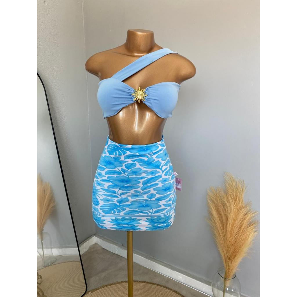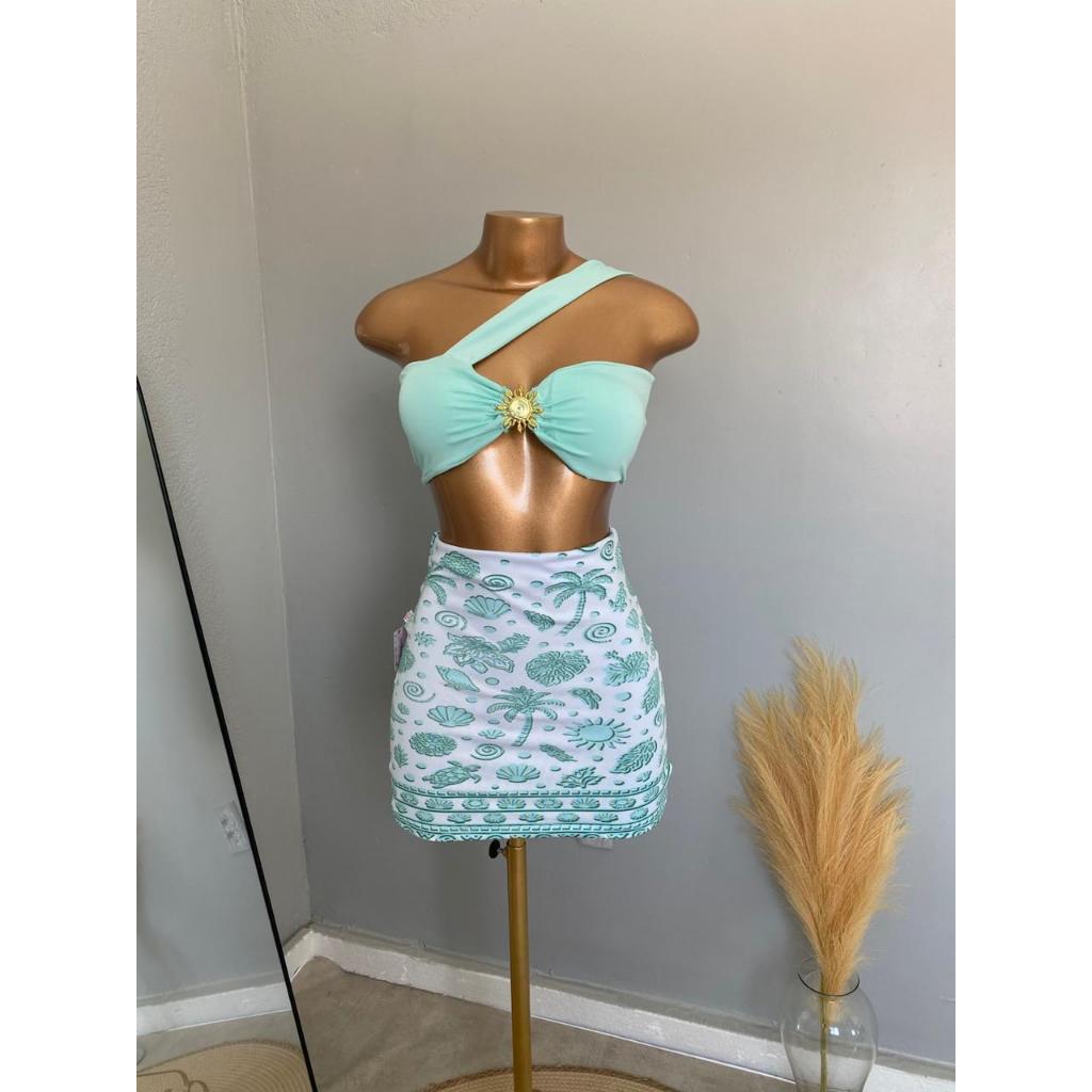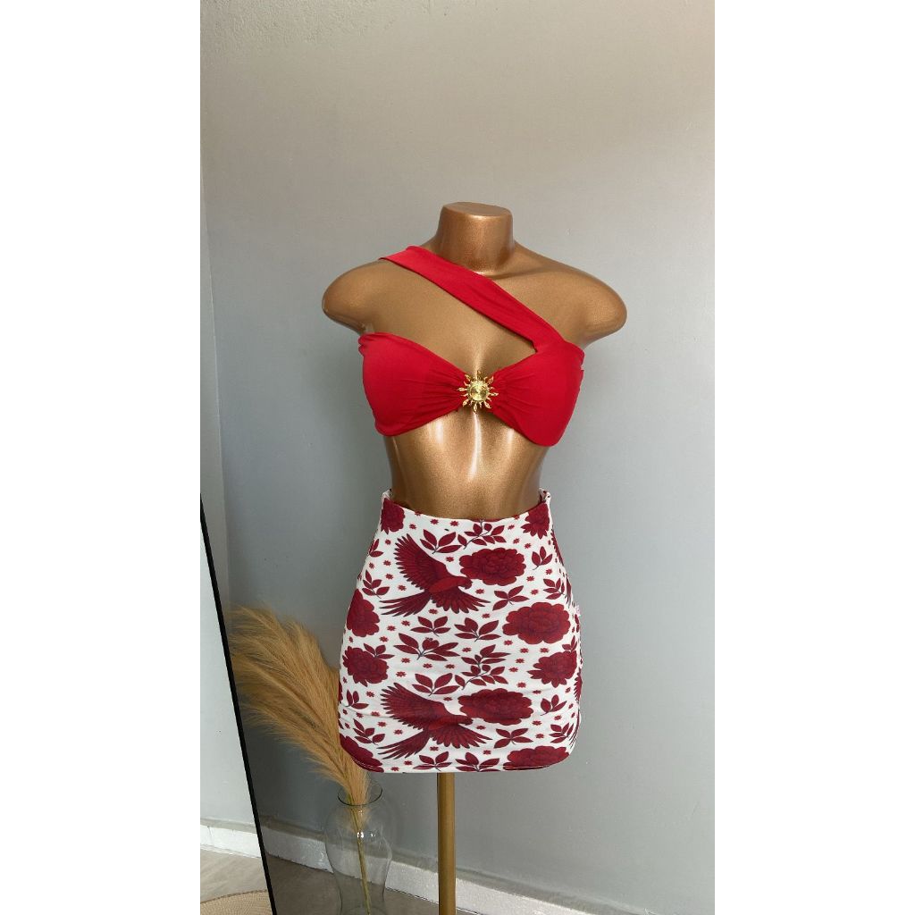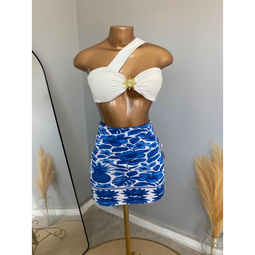 CONJUTO LUA FEMININO, SAIA CURTA, SUPLEX ESTAMPADO, CROPPED COM BOJO POLIAMIDA,TENDÊNCIA, VERÃO, ESTILOSO.