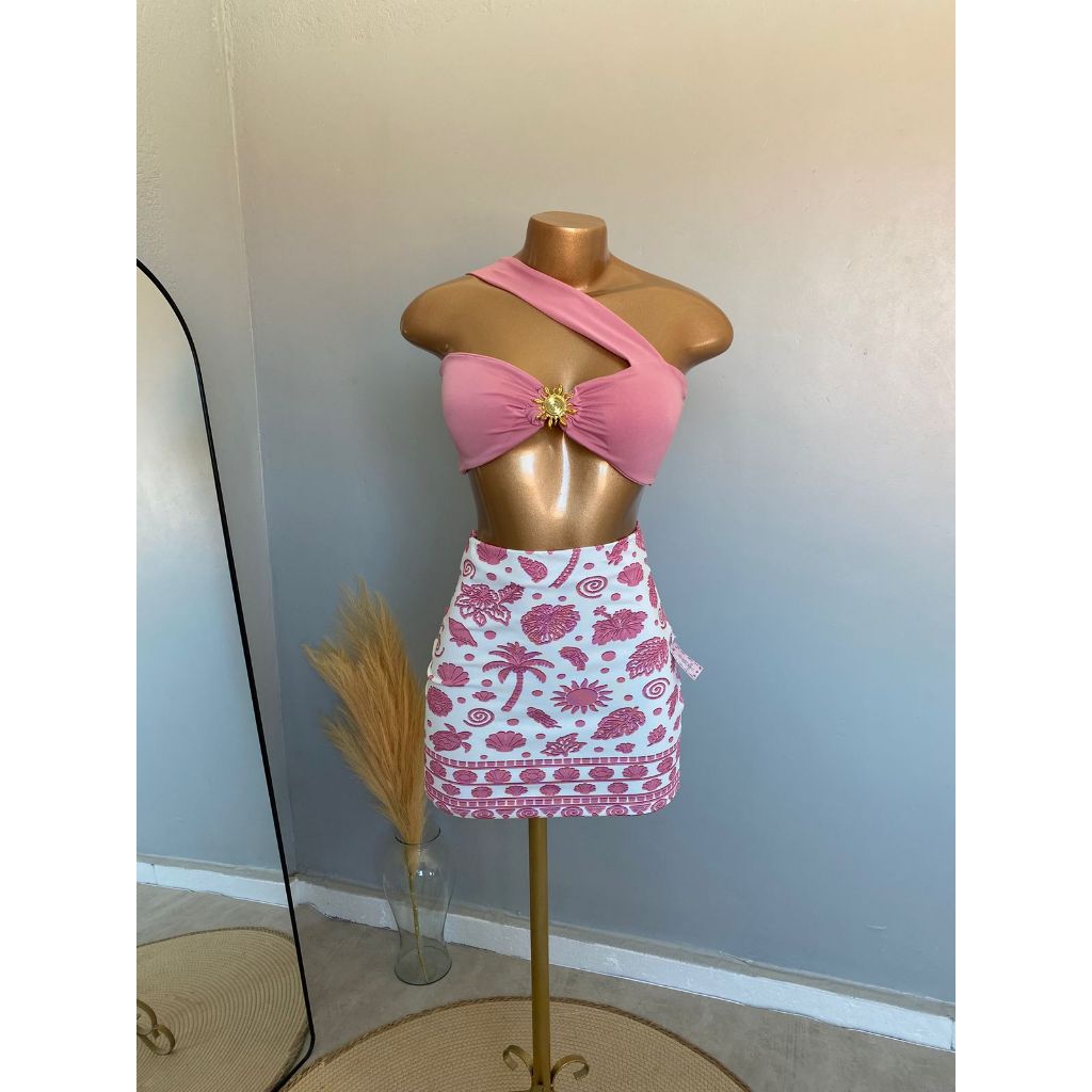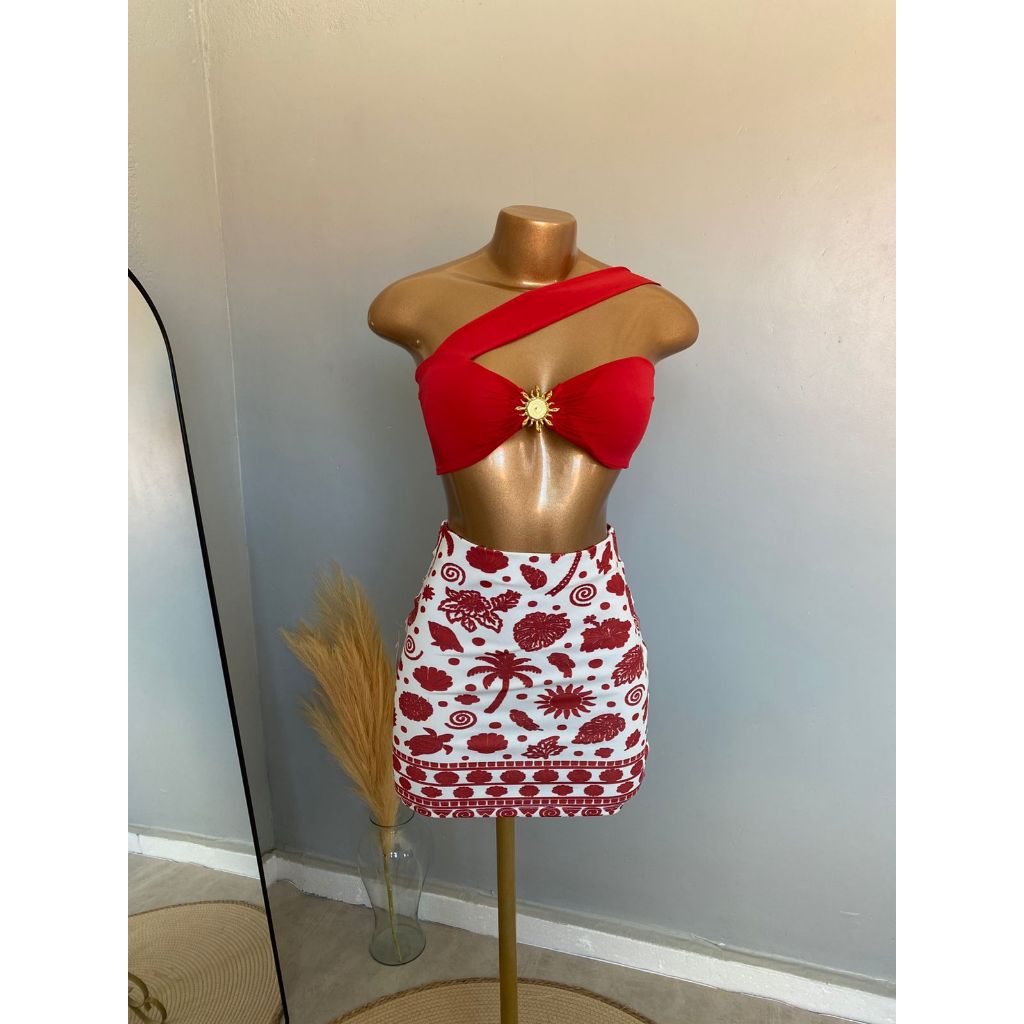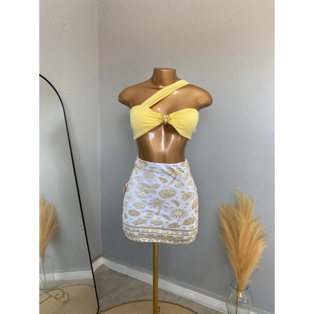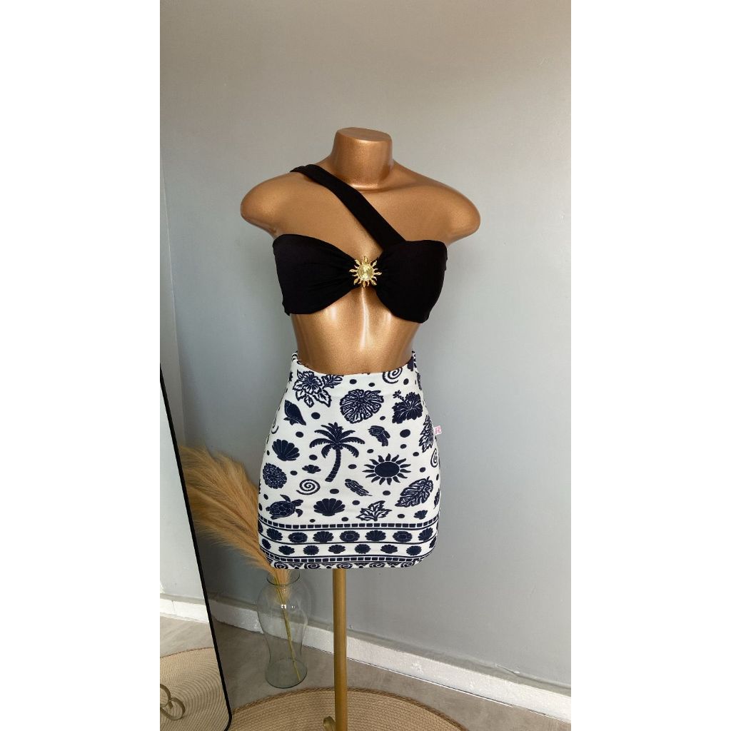 CONJUTO LUA FEMININO, SAIA CURTA, SUPLEX ESTAMPADO, CROPPED COM BOJO POLIAMIDA,TENDÊNCIA, VERÃO, ESTILOSO.