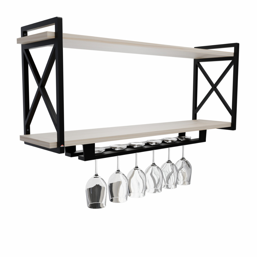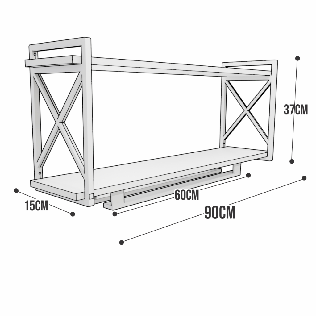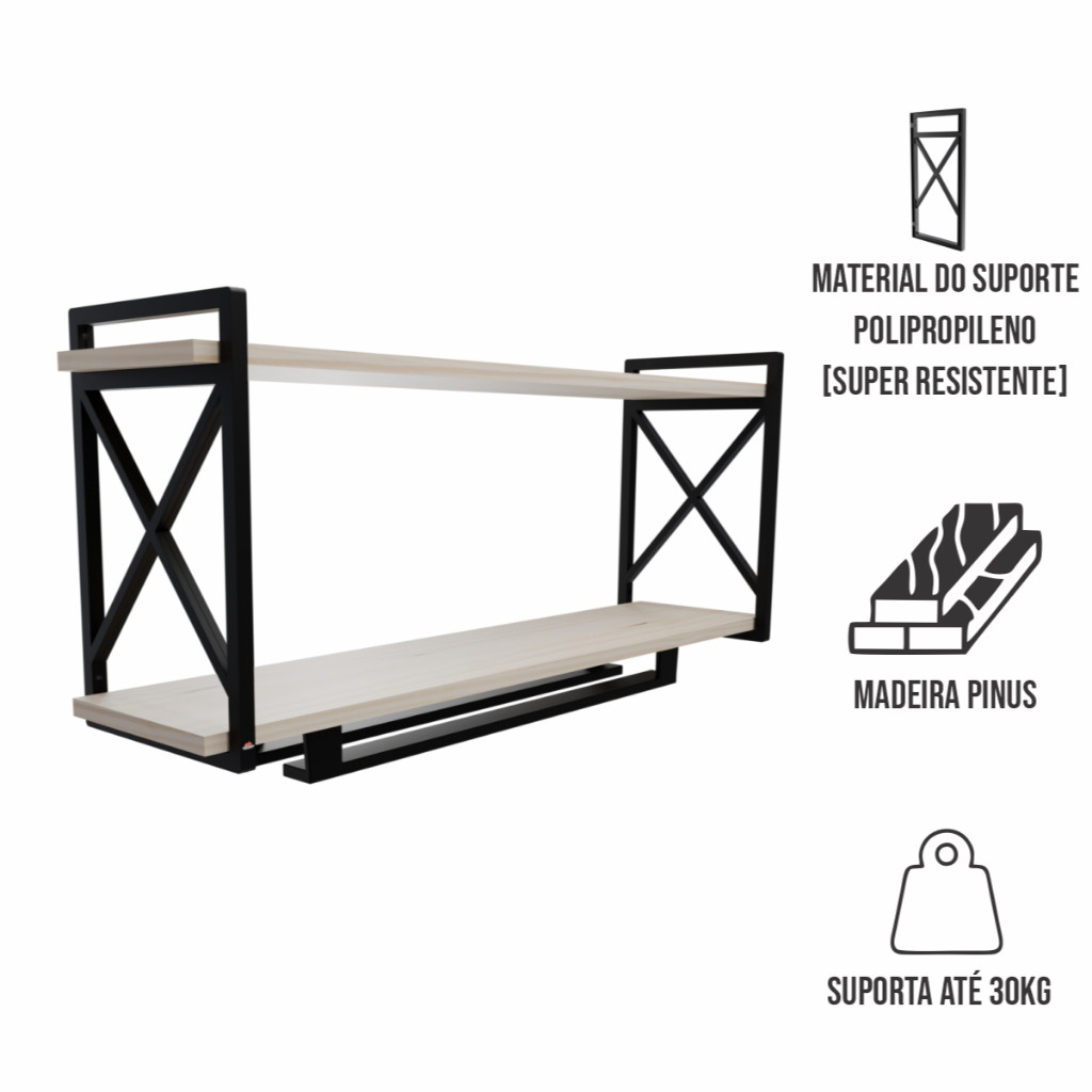 Prateleira Estilo Industrial com Porta taça 15x90cm