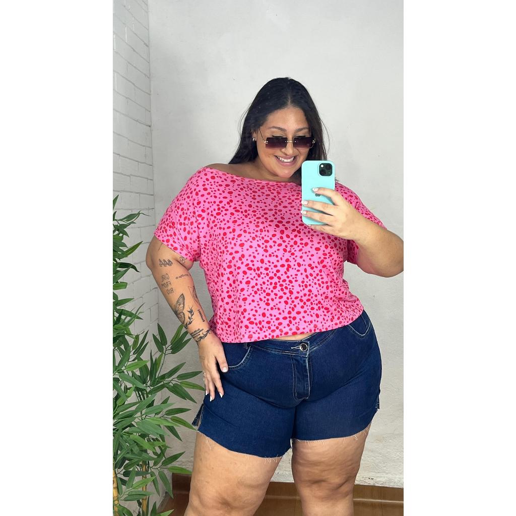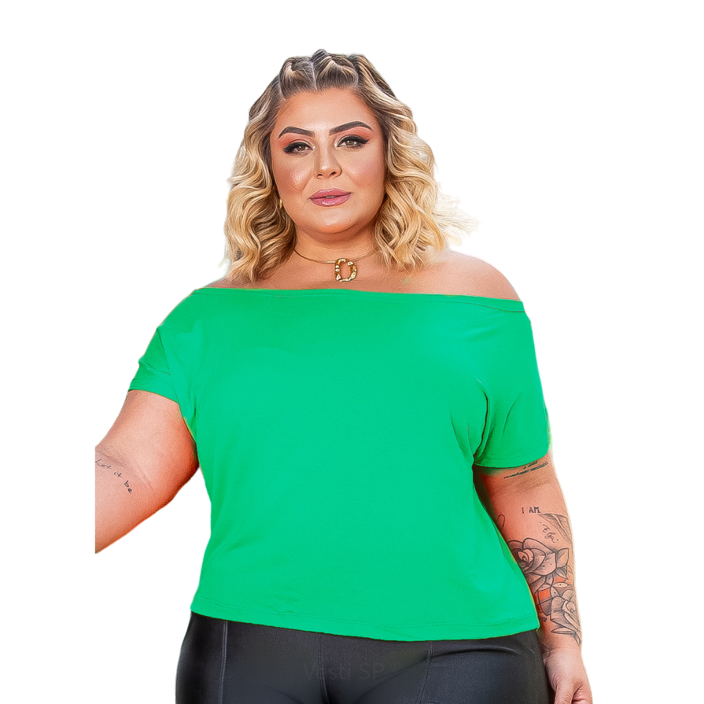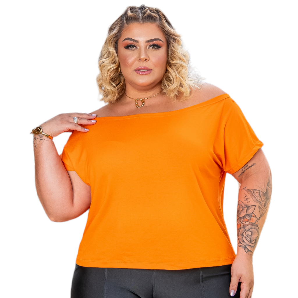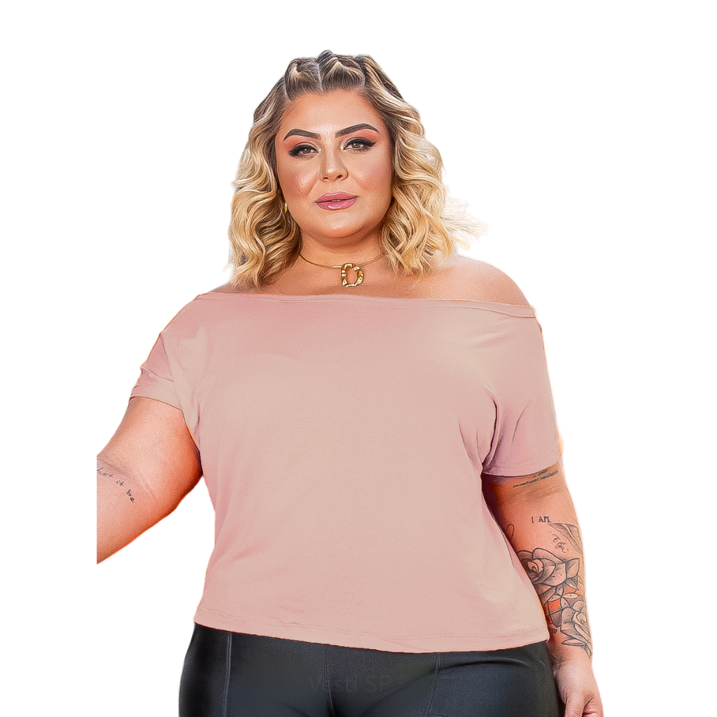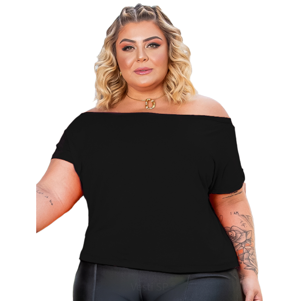 Blusa Feminina Plus Size Decote Canoa ombro a ombro 46 a 52 Verão Elegante Básica
