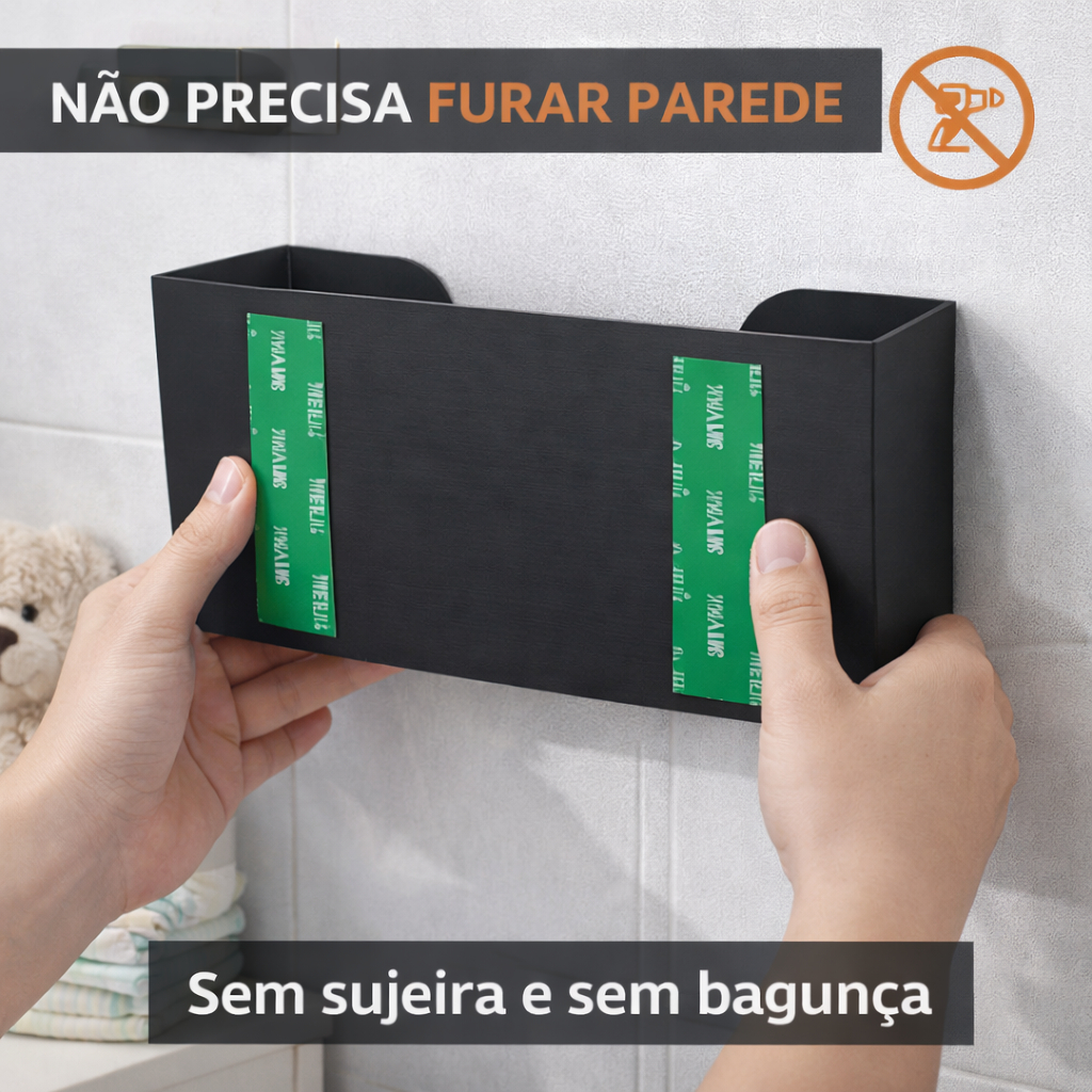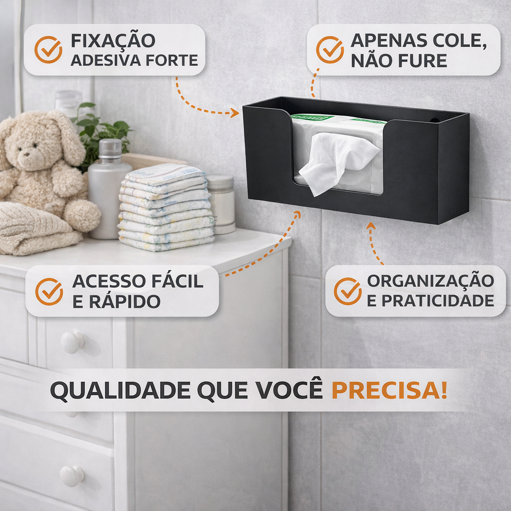Porta Lenço Umedecido de Parede com Fita Dupla Face Suporte Toalha Umedecida Sem Furo Organizador
