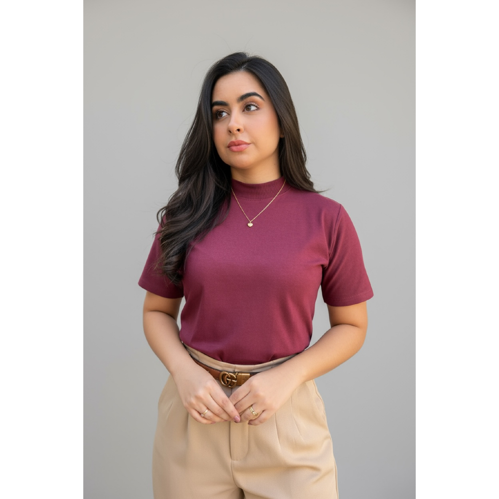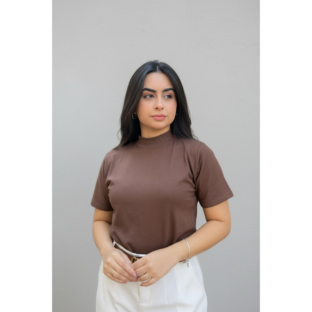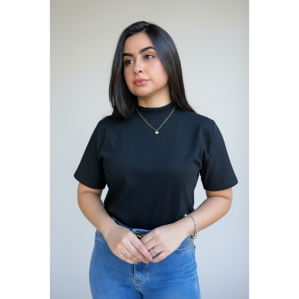 Kit 3 Blusas Femininas Gola Alta Básica de Algodão Fashion e Atemporal