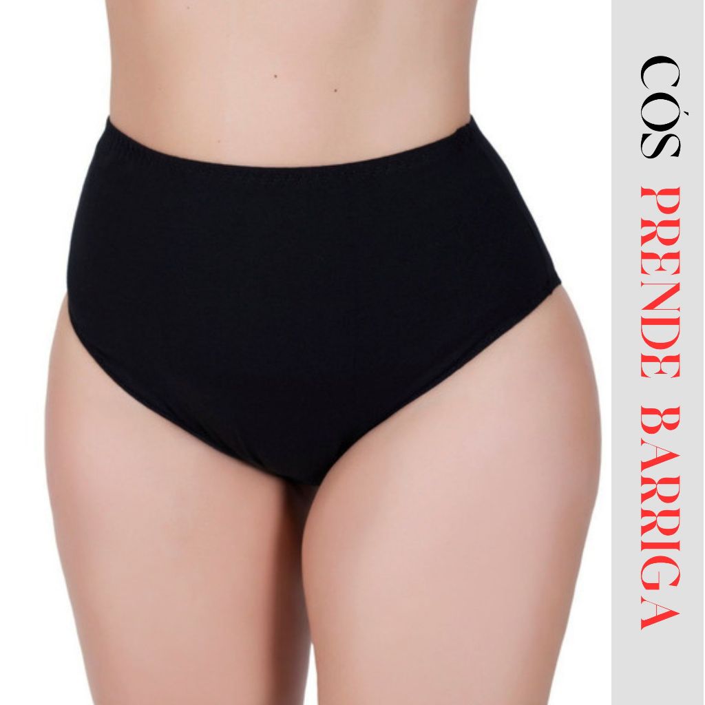 KIT 3 PECAS Calcinha Feminina Pós Parto Cintura Cós Alta Duplo Segura Barriga
