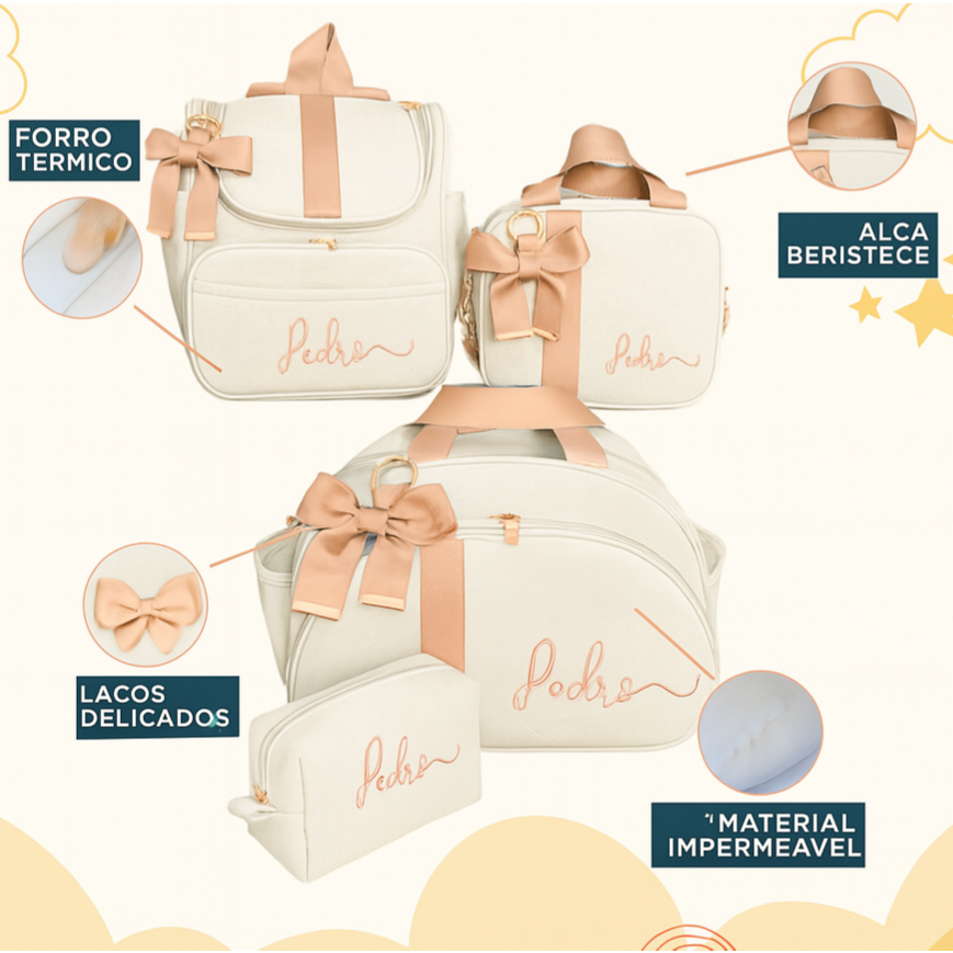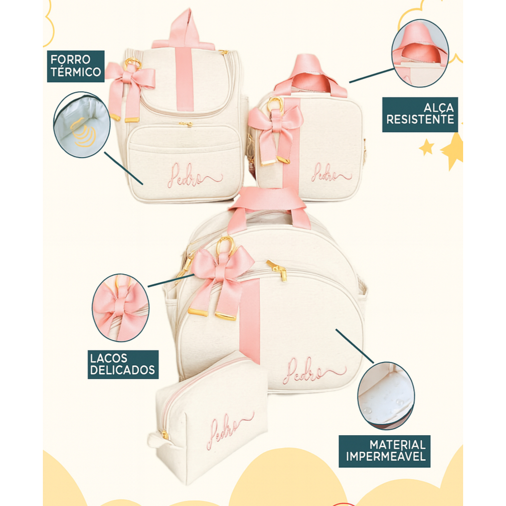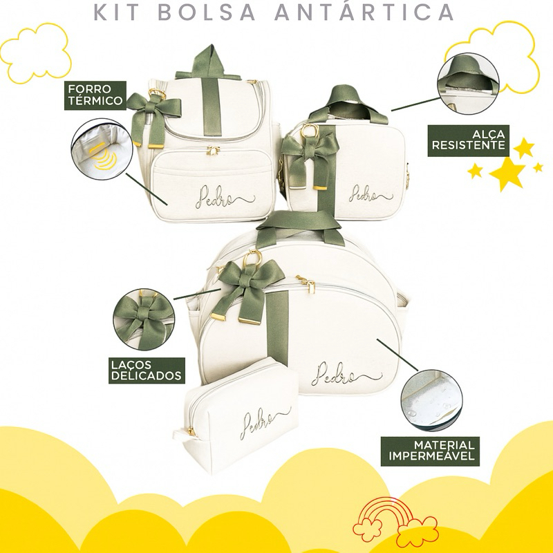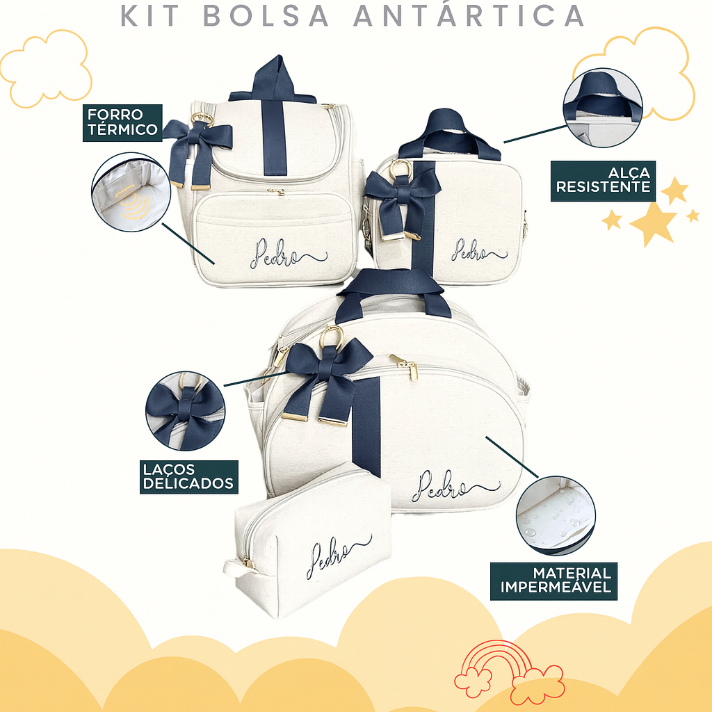 Kit Maternidade 4 Peças Personalizado Térmica Impermeável, Coleção Antártica