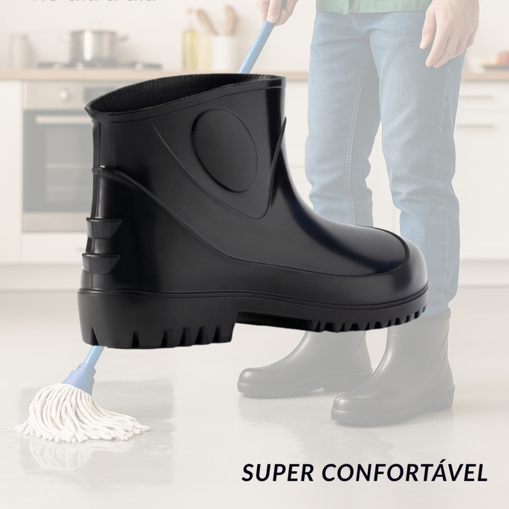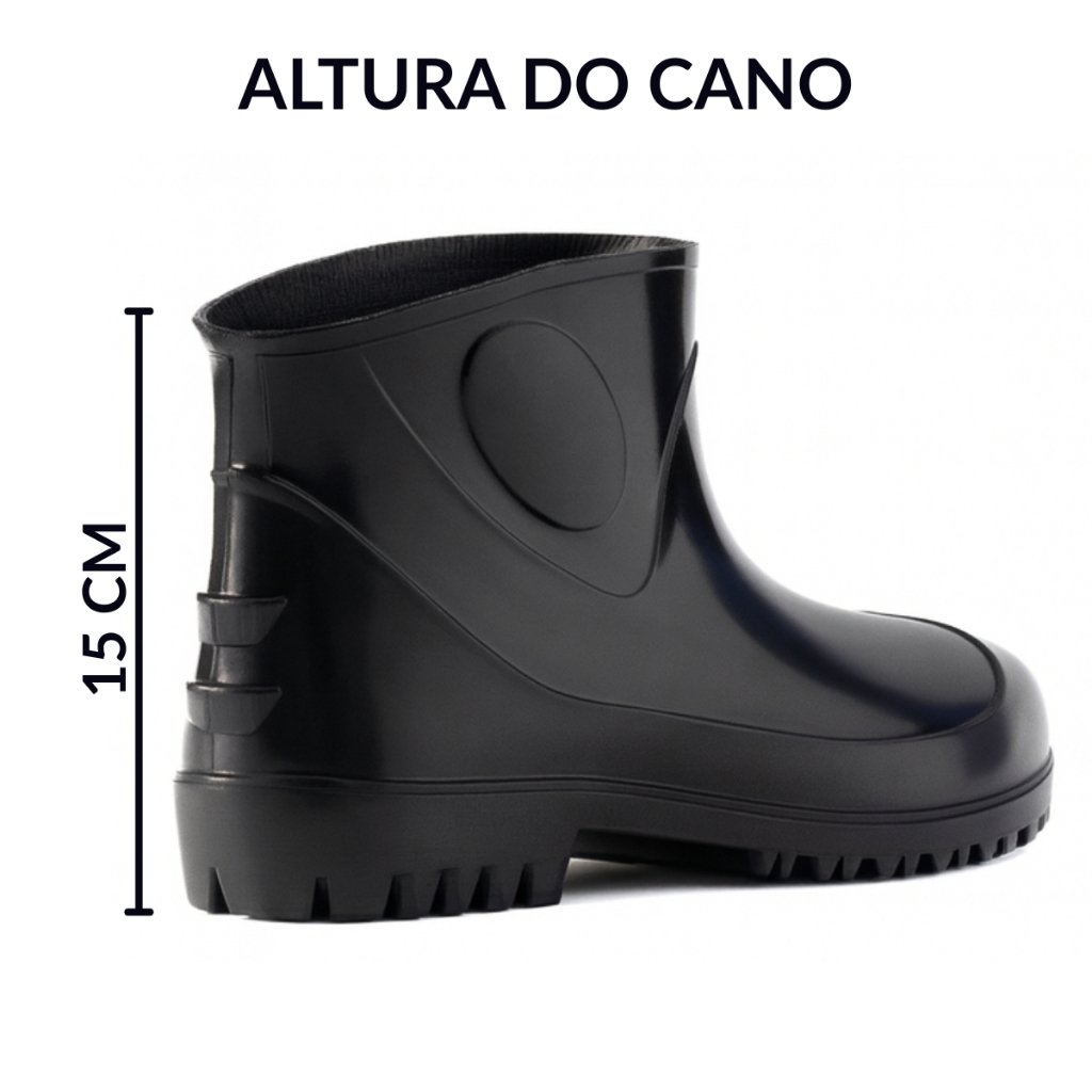 Bota de Borracha Cano Curto Preta Impermeável Antiderrapante Profissional Limpeza Cozinha Jardim