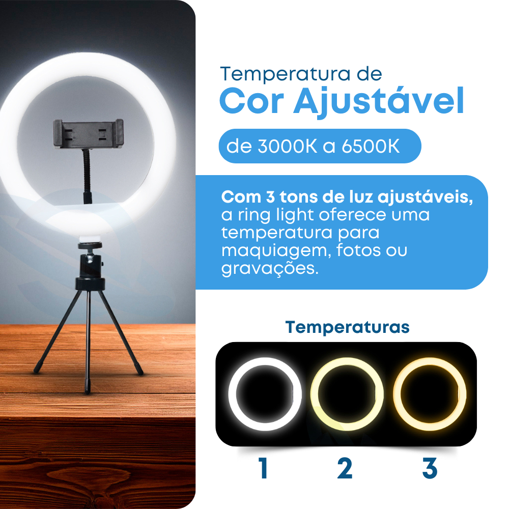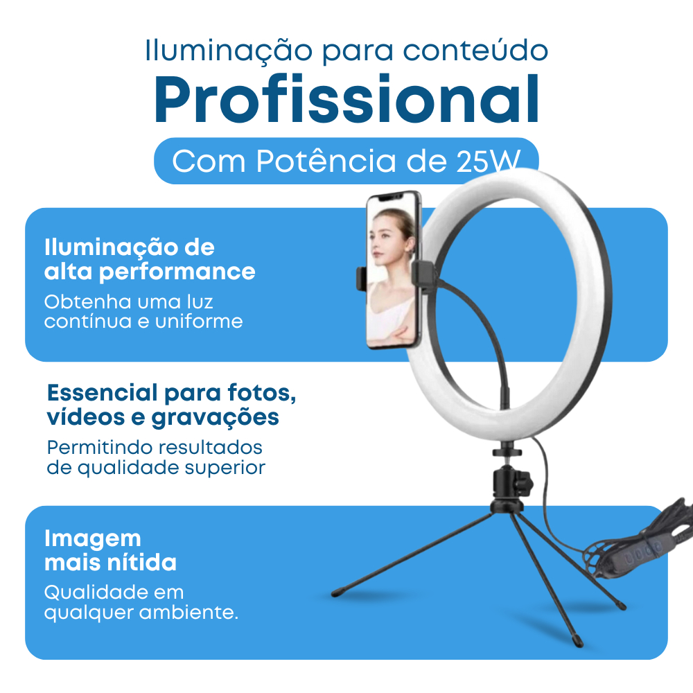 Ring Light Iluminador de LED 8 Polegadas 20cm com Tripé mesa