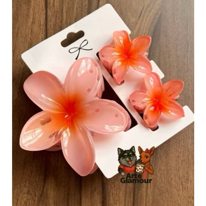 Kit 3 Presilha De Cabelo Grampo CORES EXÓTICAS SÓ AQUIII Praia Piranha de Flor Presilhas para Cabelo Feminino