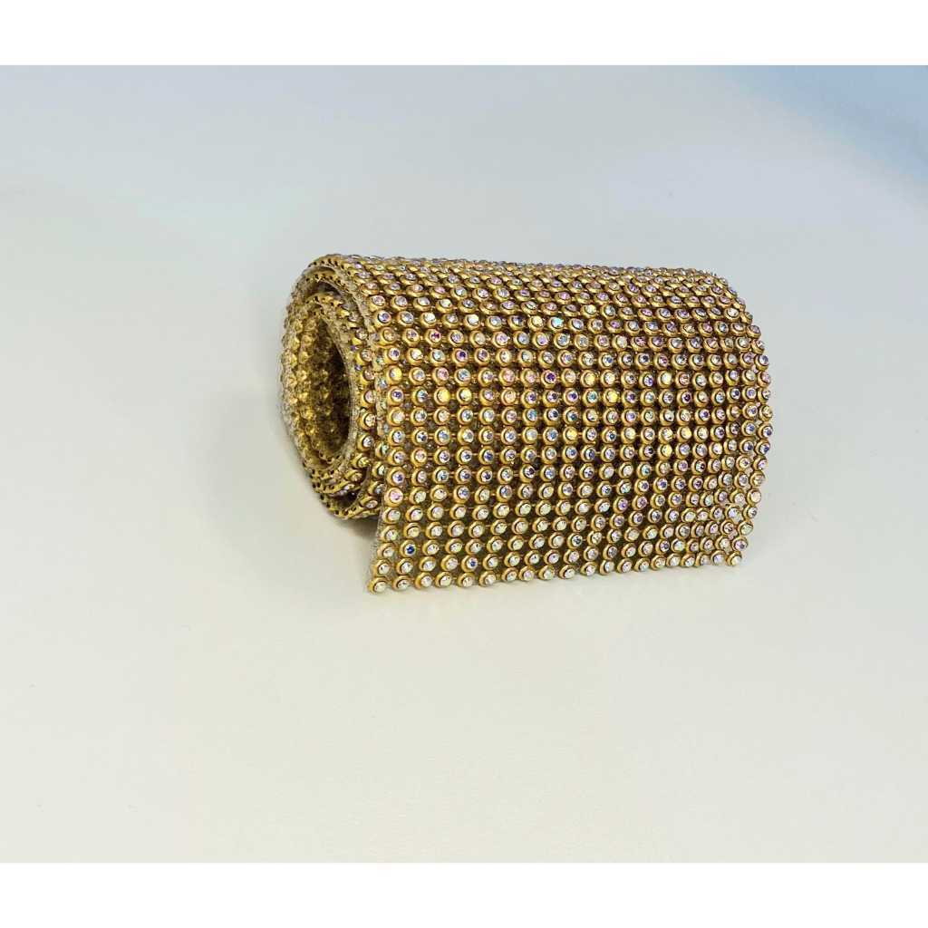 Manta de Strass para Artesanato Dourada Prata Colorida 45Cm Artesanato