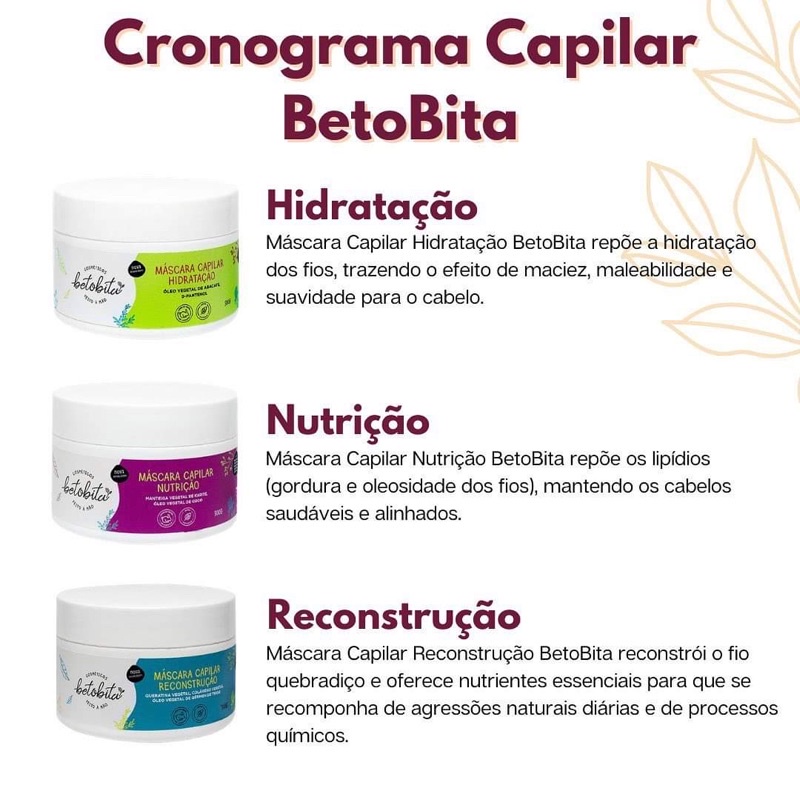 Kit Cronograma Capilar BetoBita Hidratação Nutrição e Reconstrução Máscara