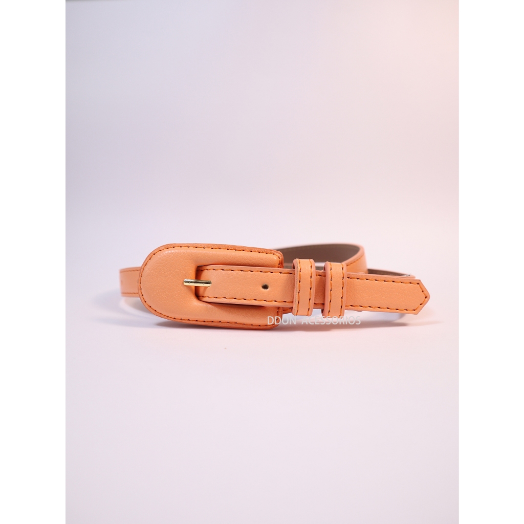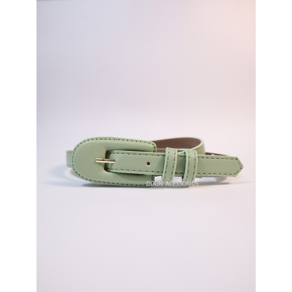 Cinto Feminino Elegante Casual com Fivela Oval Revestida para Vestido Calça Saia Multicolorido