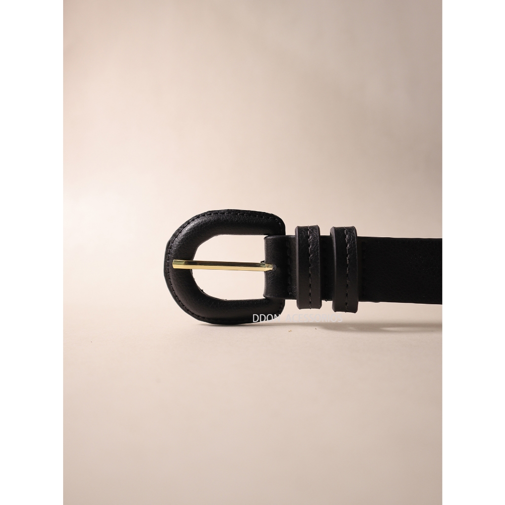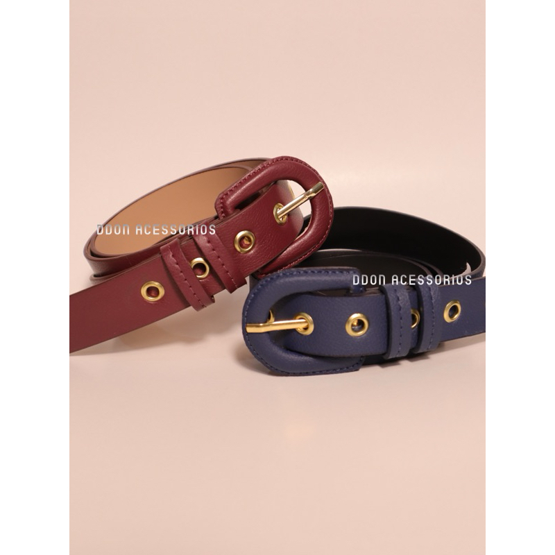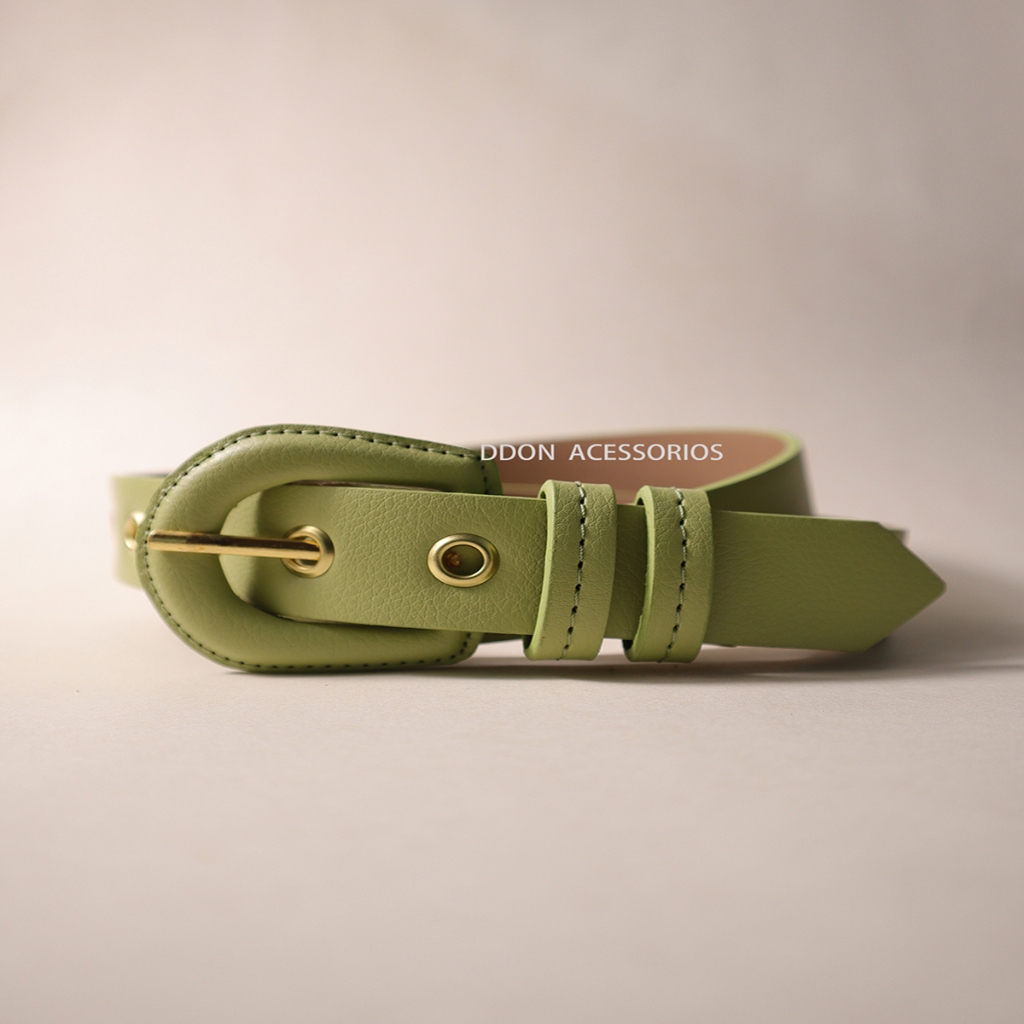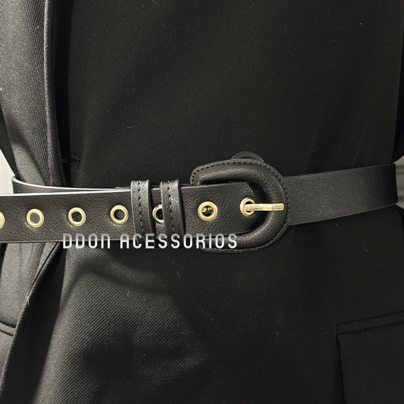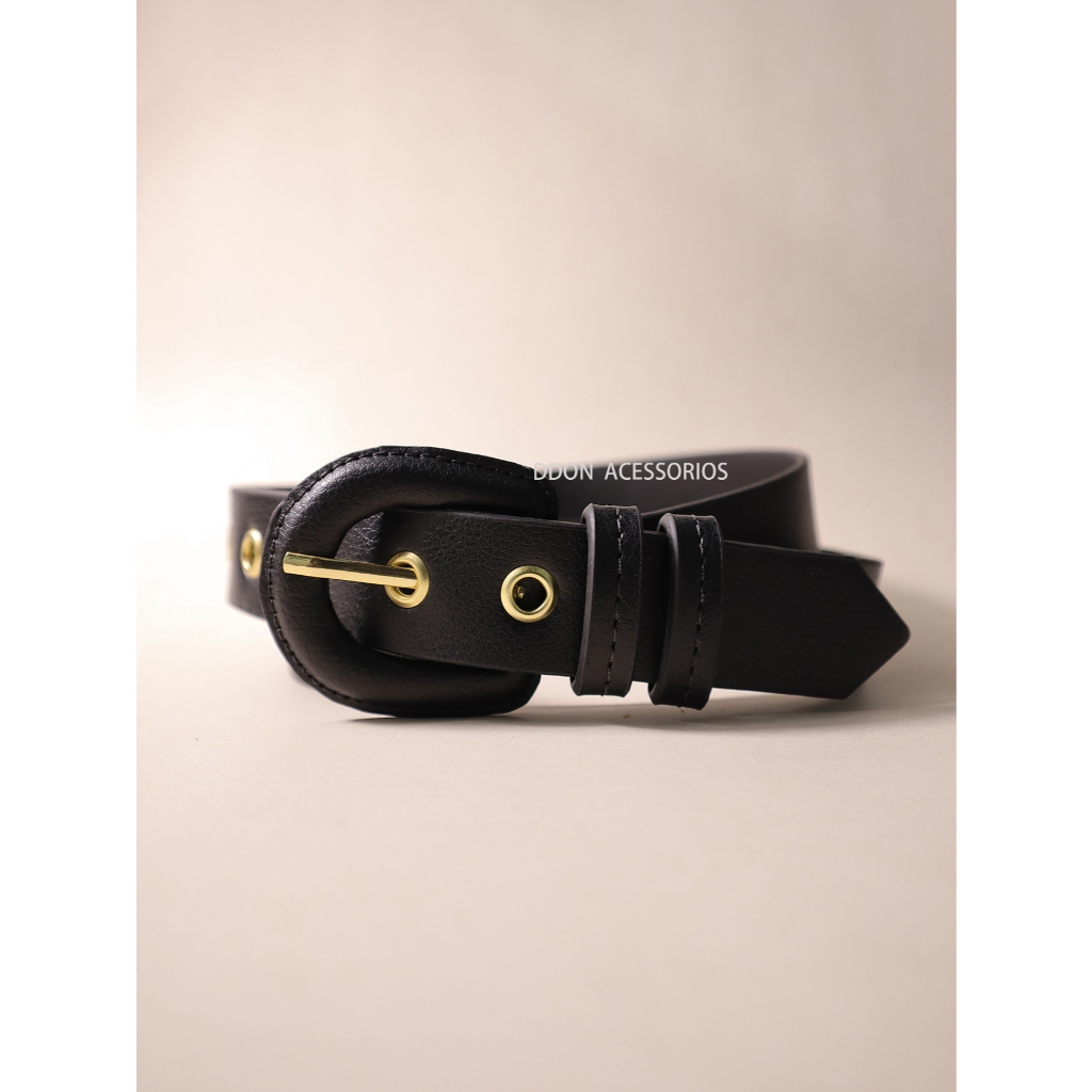 Cinto de Moda Feminina 3 cm Fivela Encapado Meio Redonda com ilhós de Metal Dourado