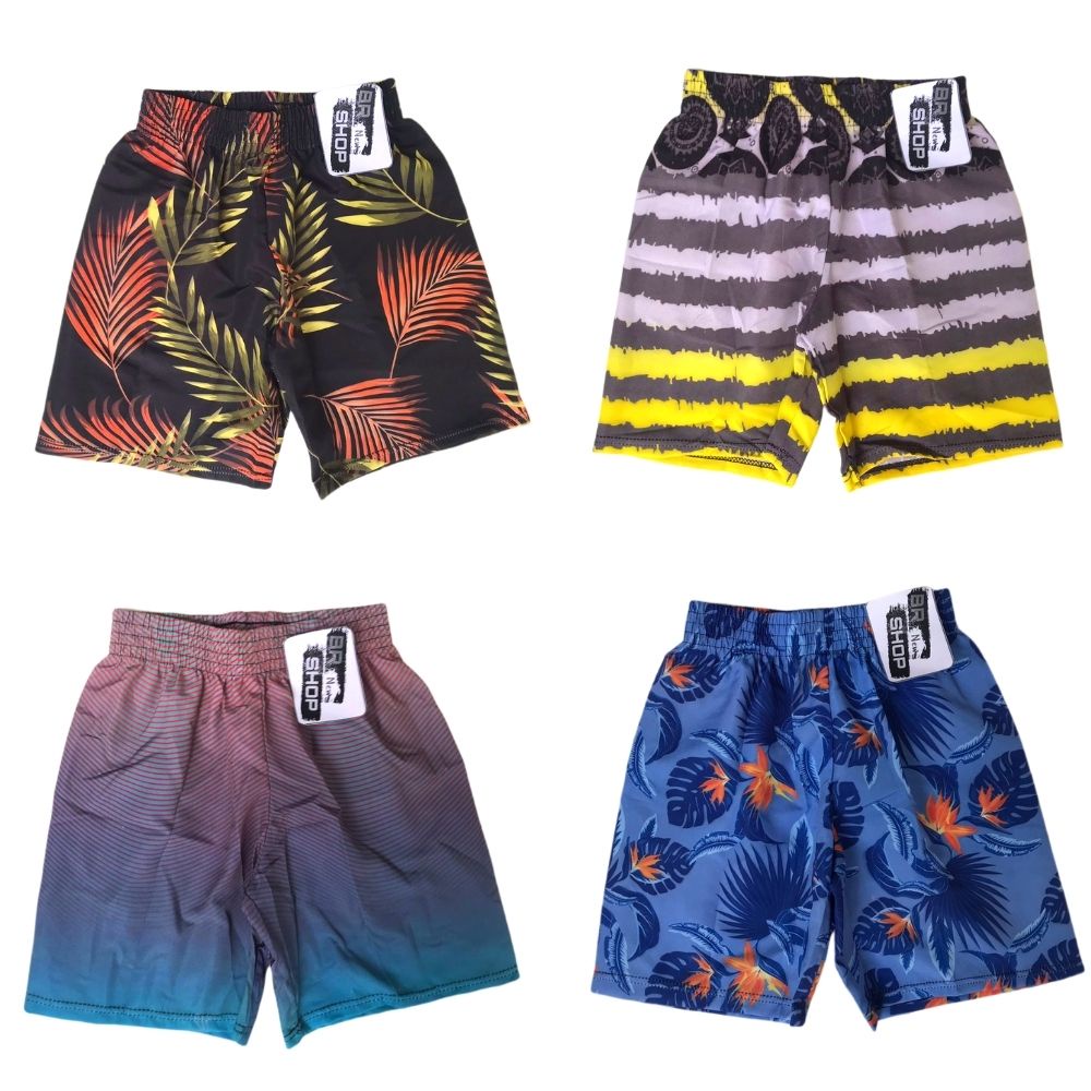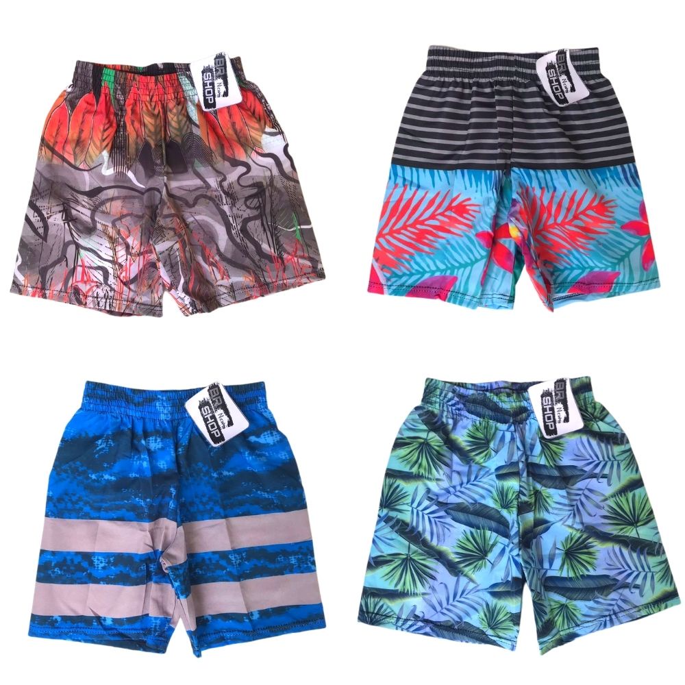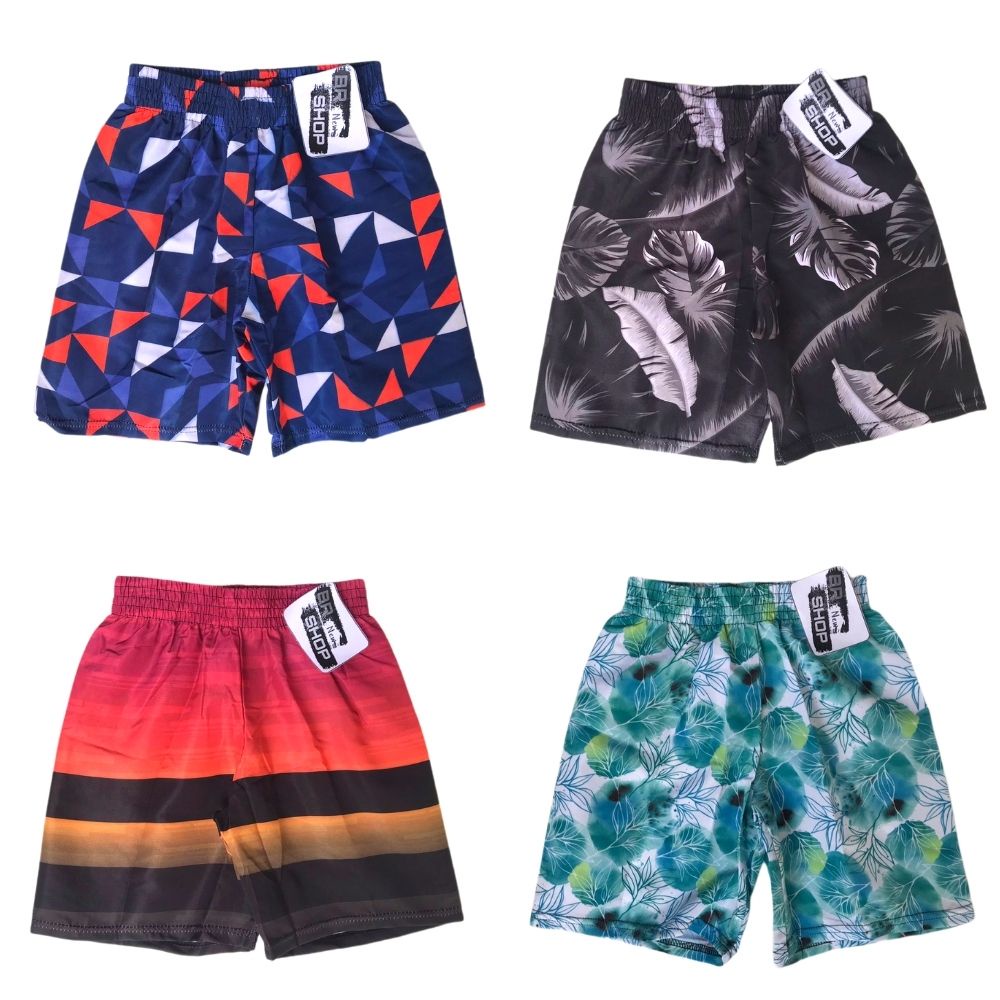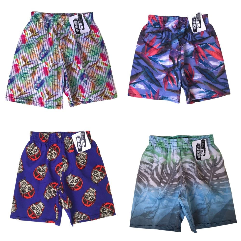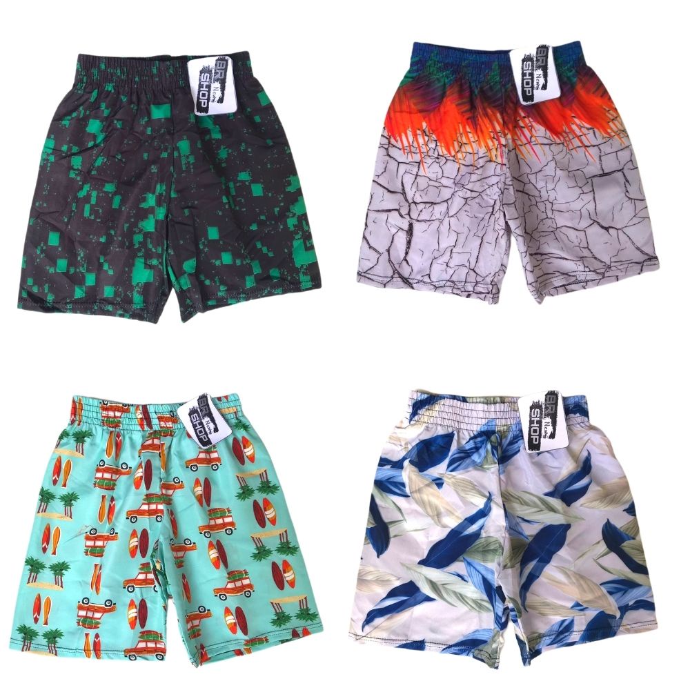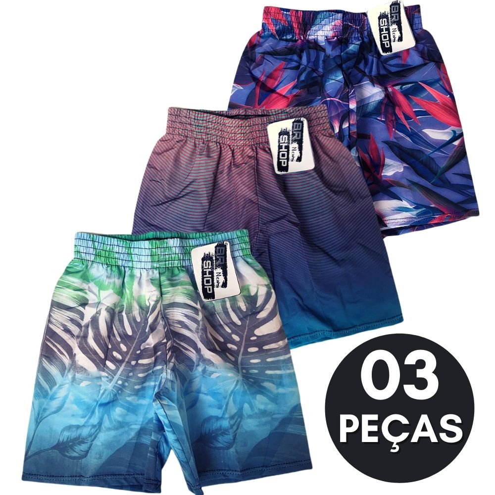 Kit Com 03 Bermuda de Elástico Infantil e Juvenil Masculina Estampado Menino Praia