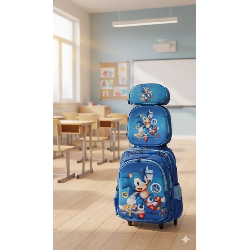 Kit Mochila de Rodinhas Sonic 2 Infantil Masculina + Lancheira Térmica + Estojo