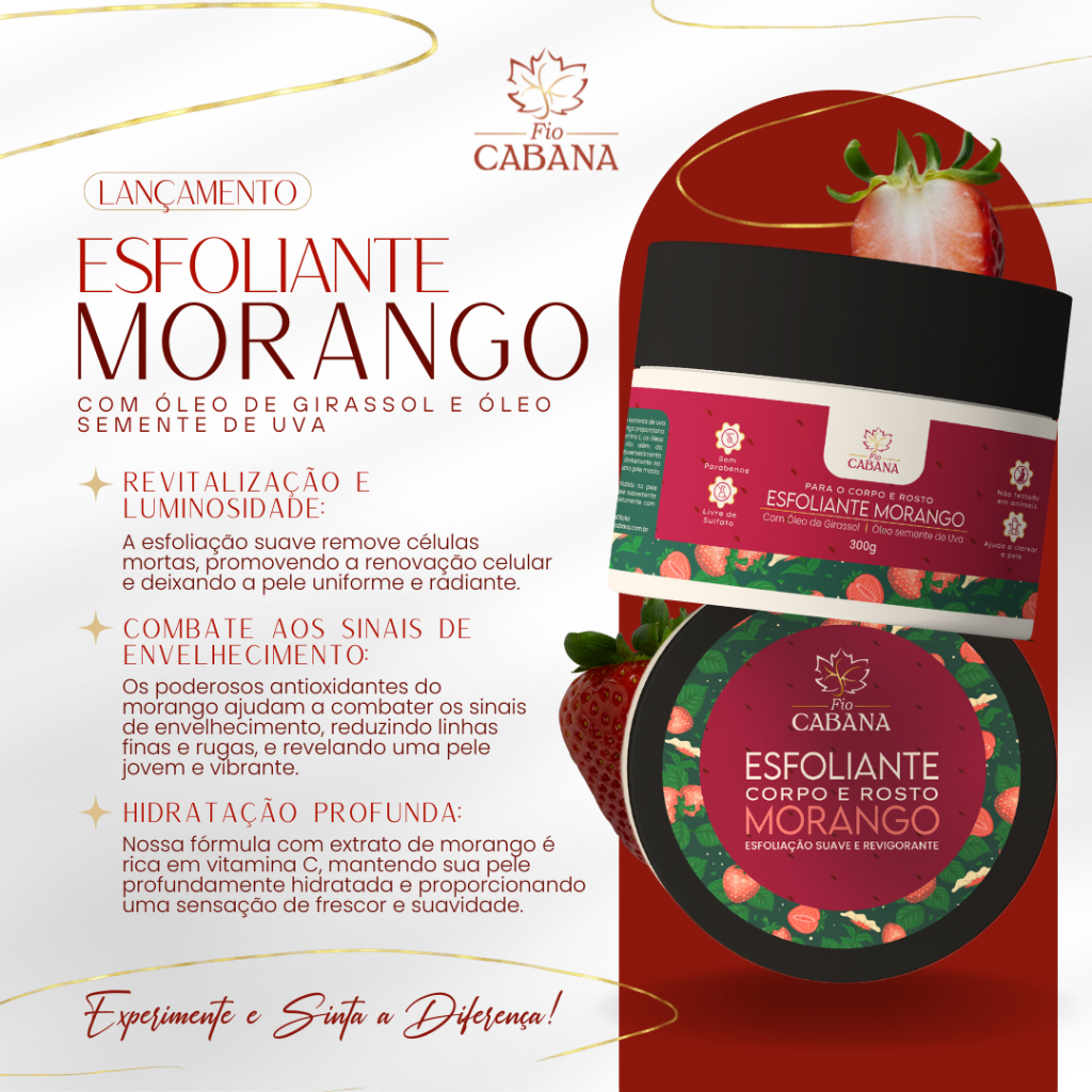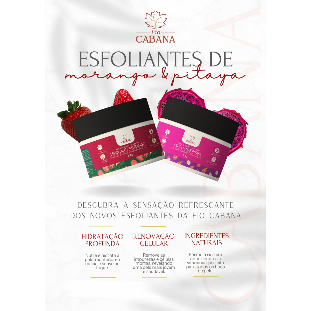Esfoliante Corporal e Facial Fio Cabana 300g – Morango ou Pitaya - Nutrição e Luminosidade