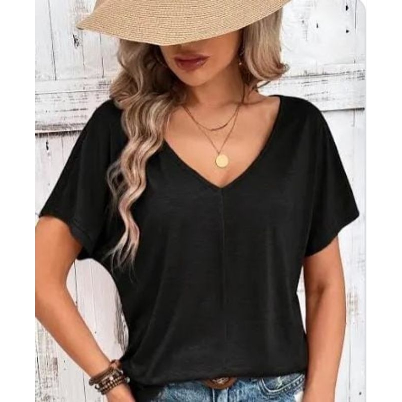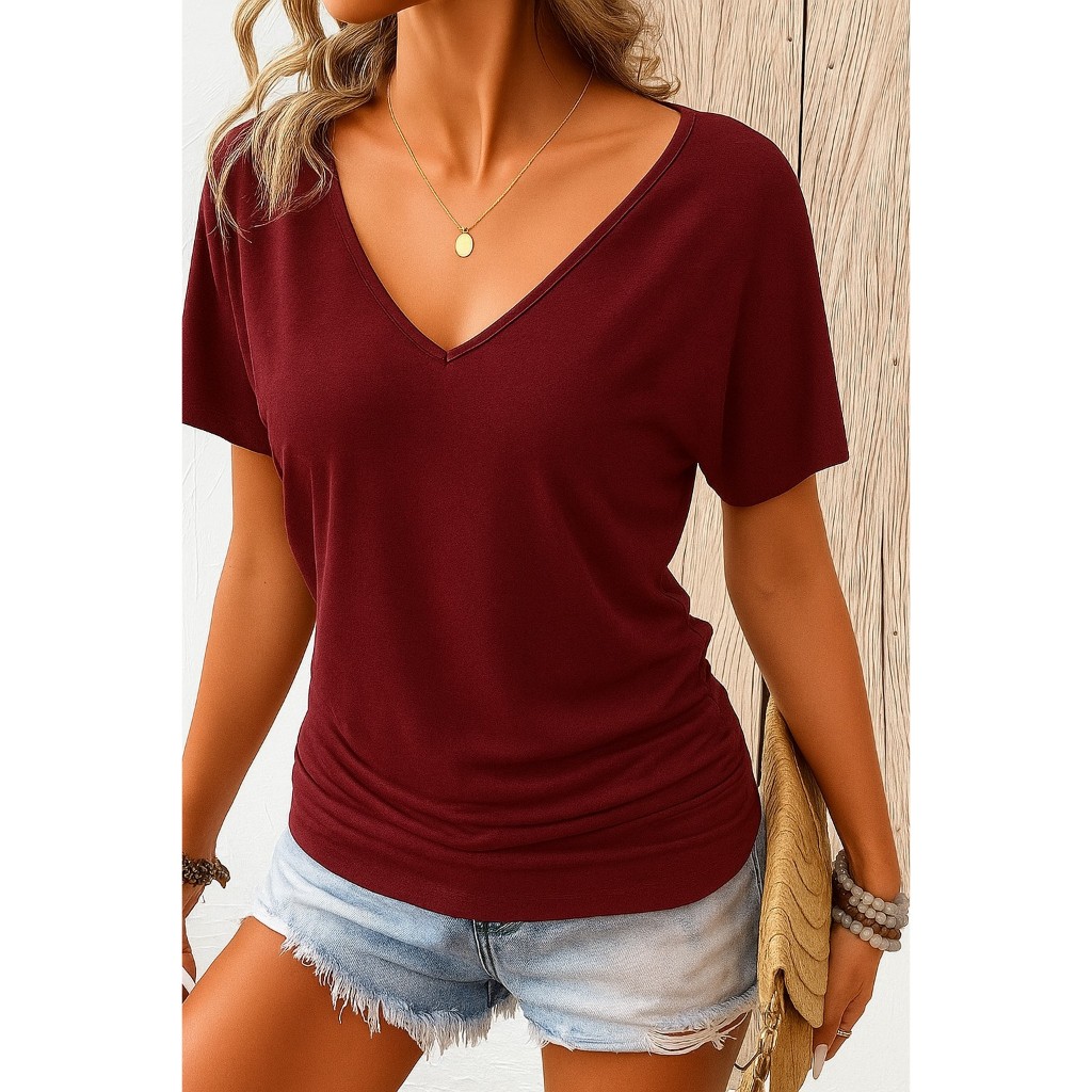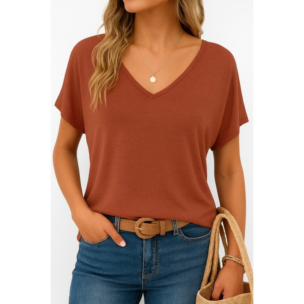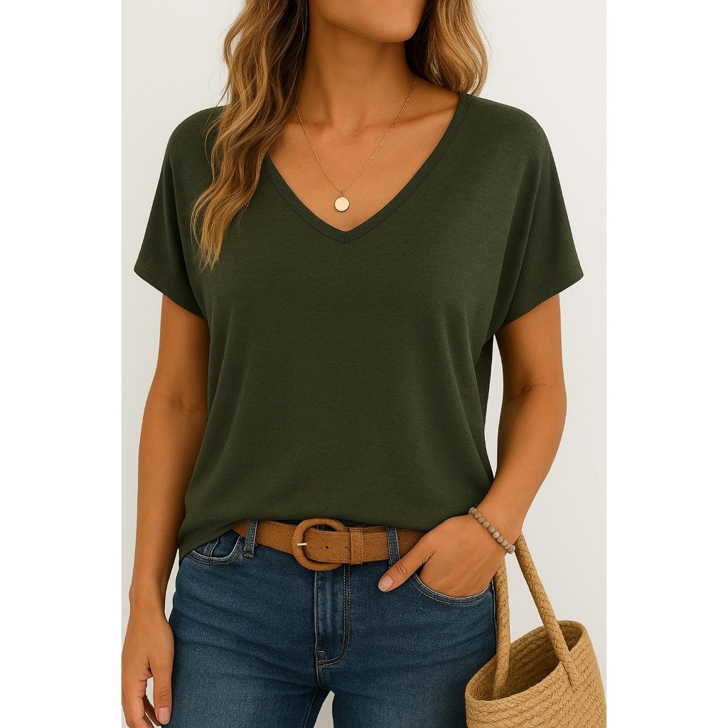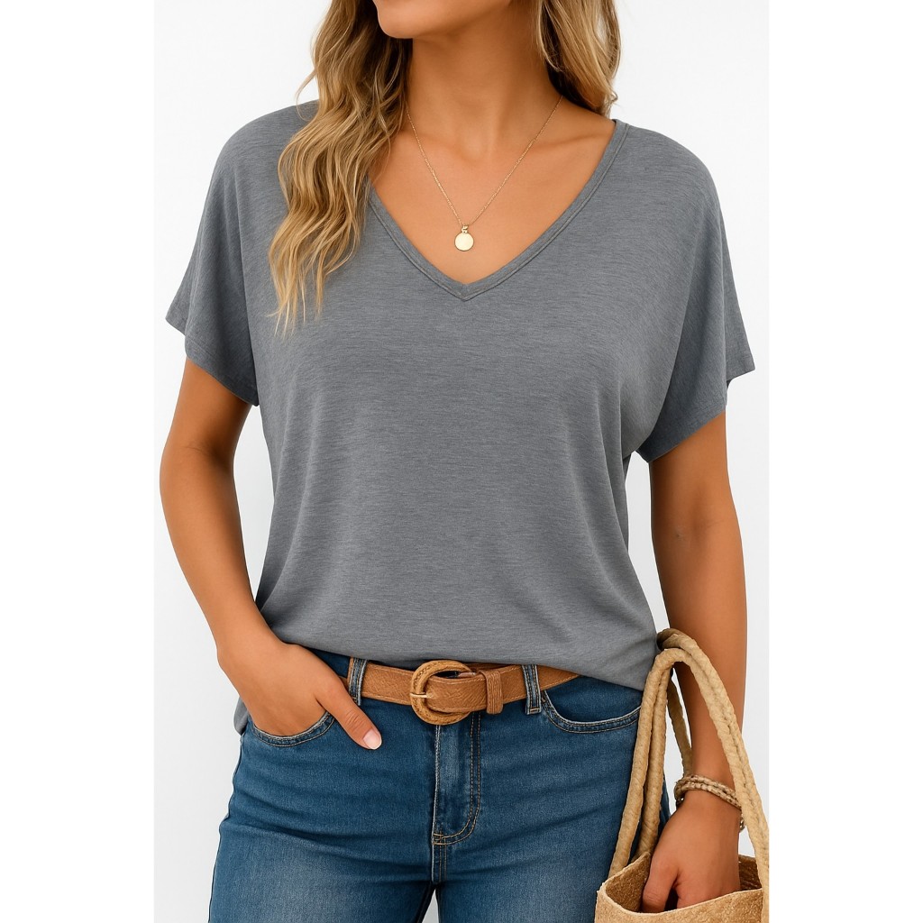 Blusa Feminina Manga Morcego Decote V Malha Leve Soltinha Casual