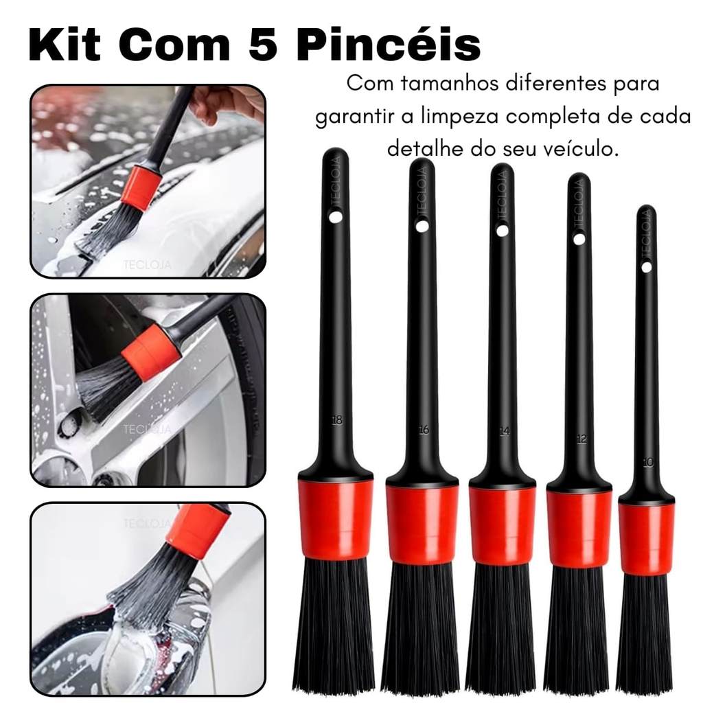 Pincel Para Limpeza Automotiva Detalhamento kit Com 5 Peças