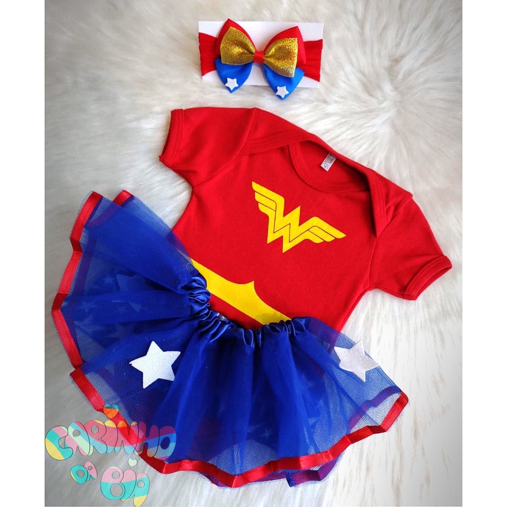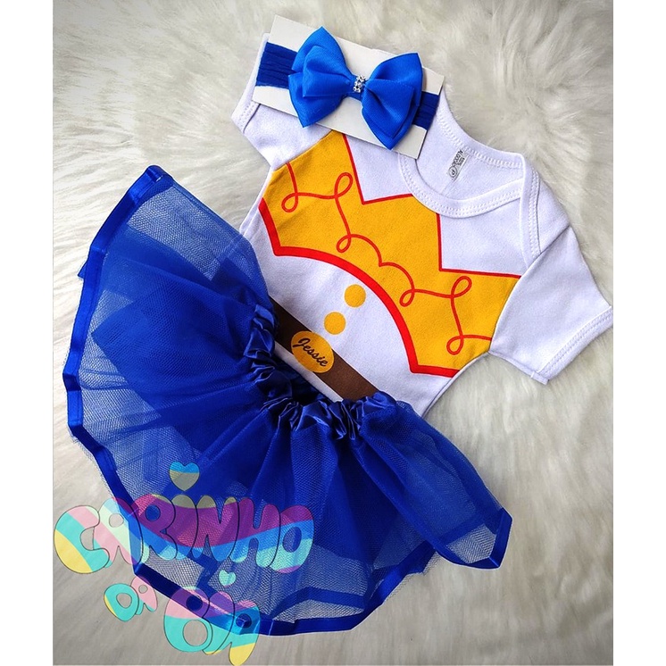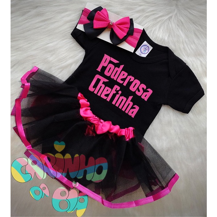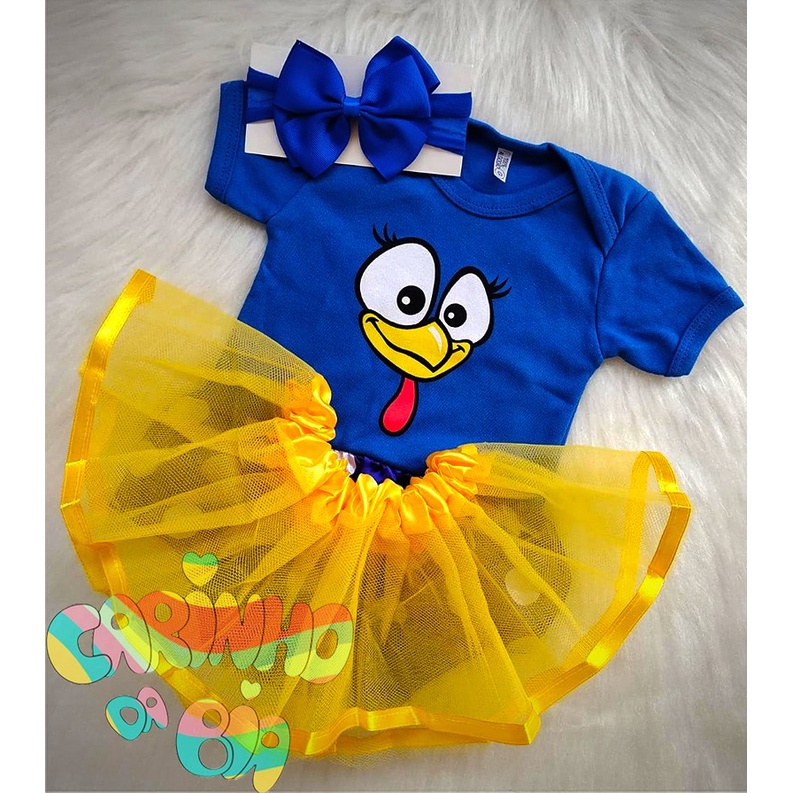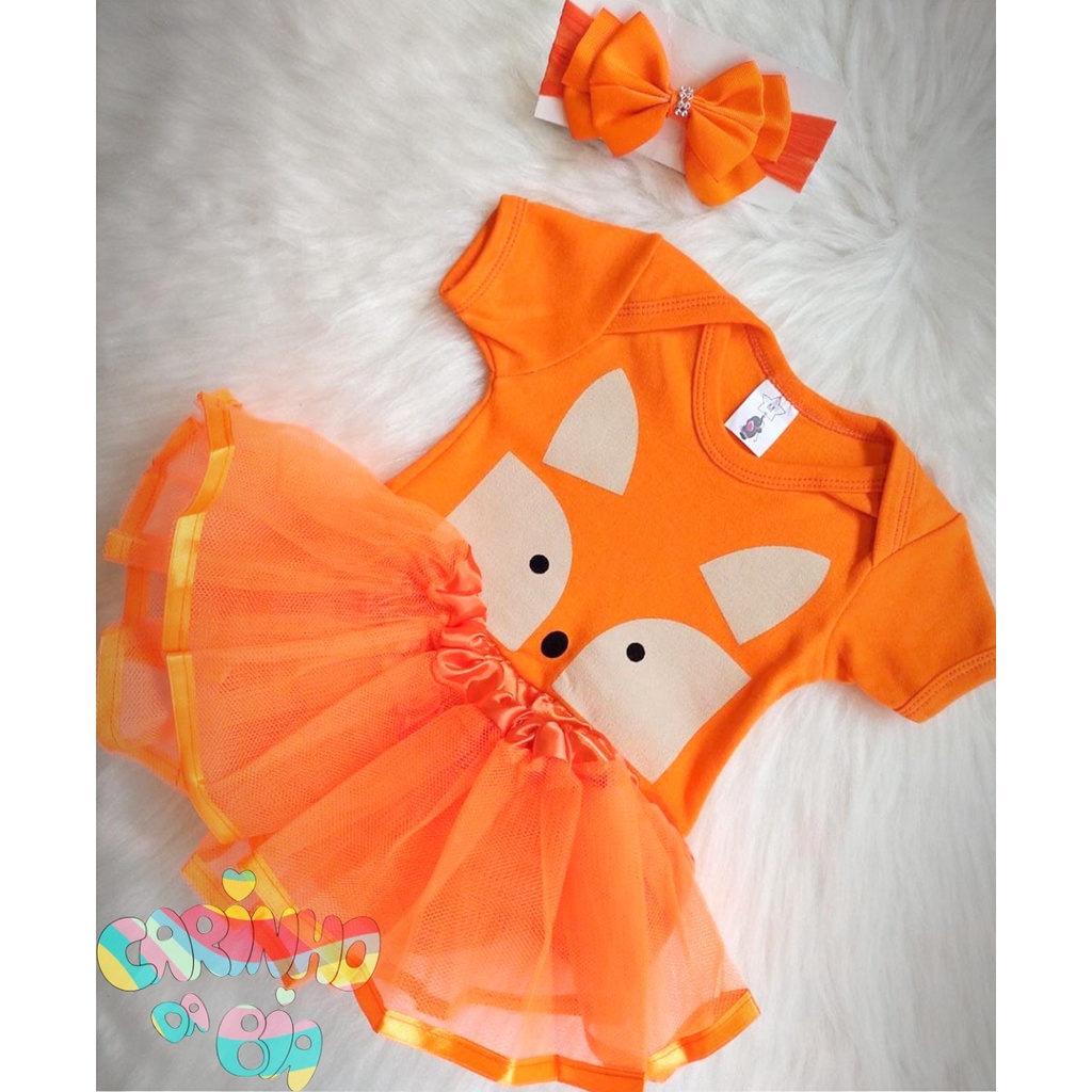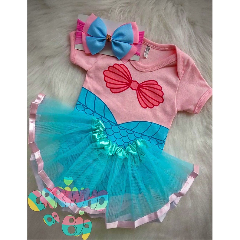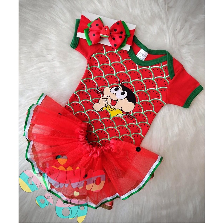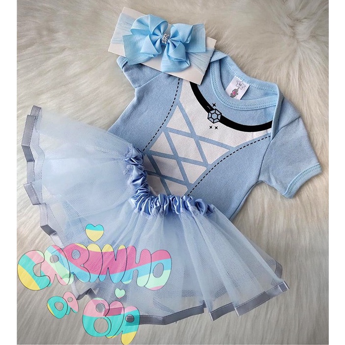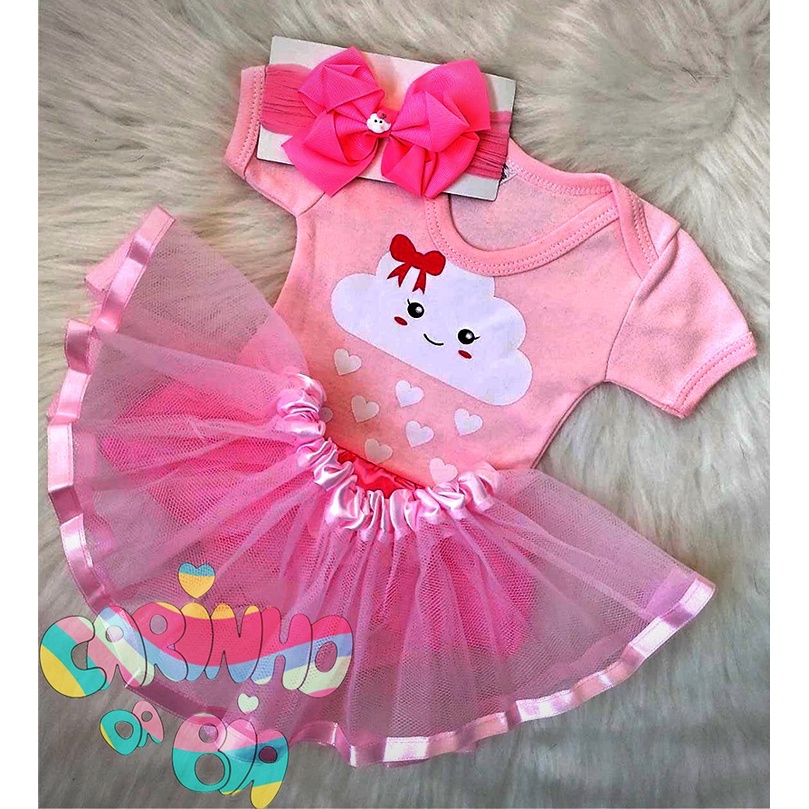 Kit Mesversário Bebê Menina Body + Saia Tule + Laço | Minnie, Emília, Branca de Neve e outros